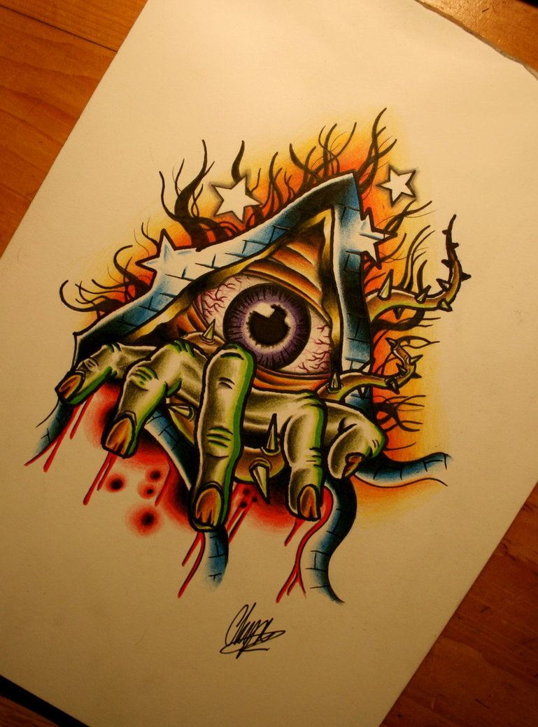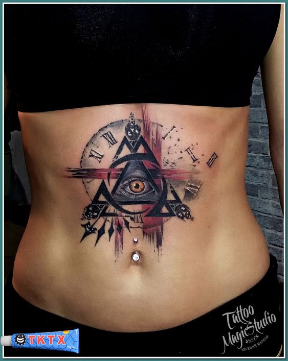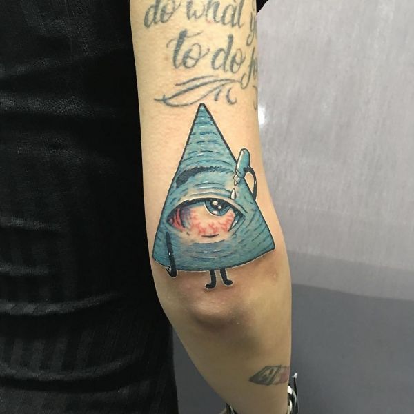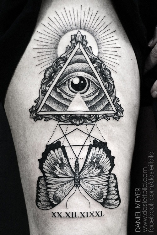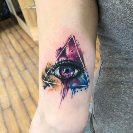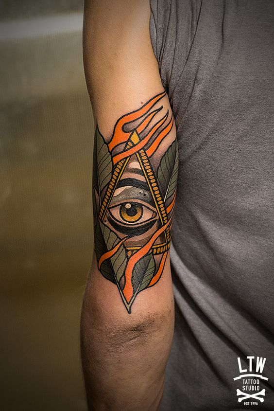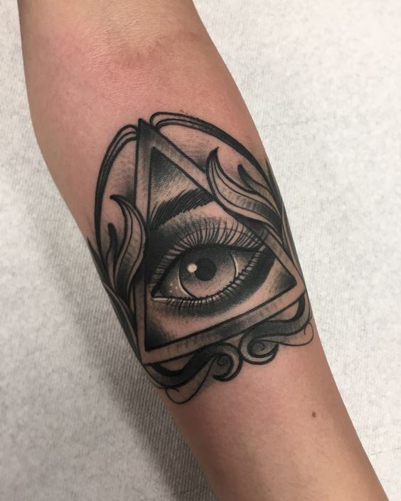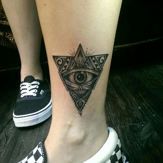 Le tatouage en triangle le plus courant est son image avec l'œil au centre, une sorte d'œil qui voit tout. En regardant l'image d'un tatouage avec un oeil dans un triangle, il y a des sentiments doubles caractéristiques du mysticisme et de phénomènes inexplicables. La signification de cette image est interprétée comme une illumination ou une illumination de conscience, bien que vers l’extérieur l’œil soit limité par les côtés du triangle. Des zones spécifiques de la religion prennent pour base leurs symboles en forme de triangle dans un triangle, car chaque religion a sa propre vision du monde qui l’entoure. De nombreuses cultures considèrent le tatouage du triangle avec l'œil à l'intérieur d'une image symbolique, conçue pour contempler tout ce qui se passe.