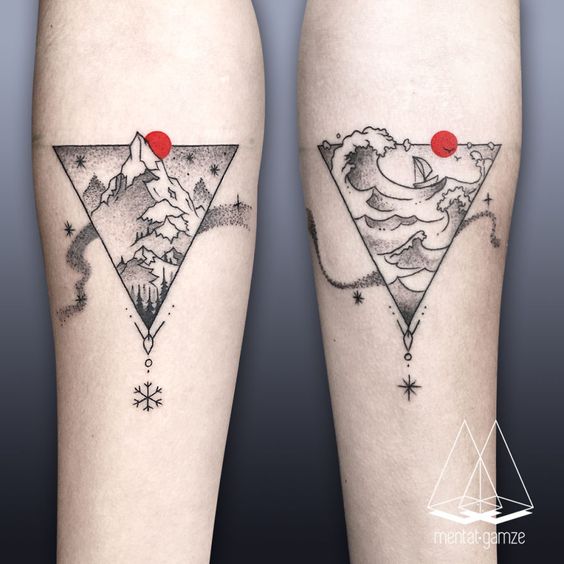 Tatouage triangle: signification, croquis et meilleurs exemples sur la photo