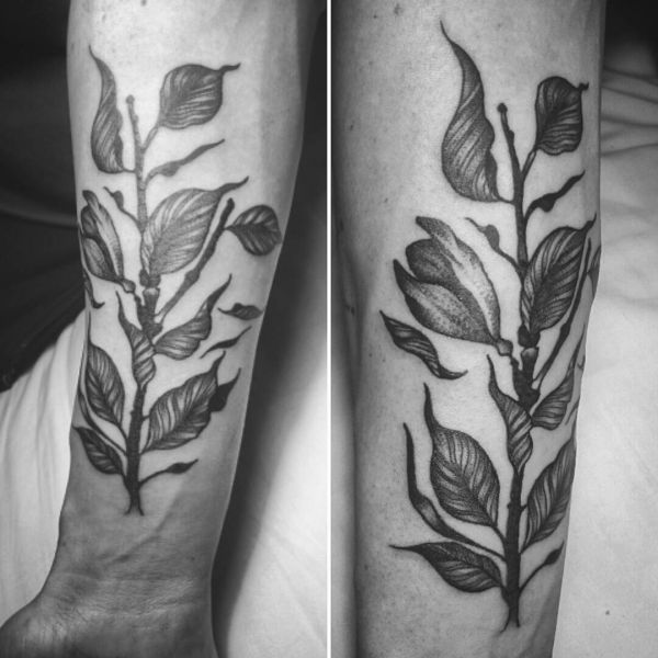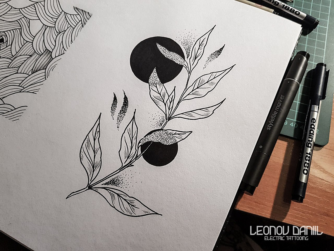 Le tatouage avec l'image de la branche a fière allure dans n'importe quel style de performance. Le choix du croquis dépend du désir et des préférences de son propriétaire, ainsi que de la taille du tatouage et du lieu de son application. Un excellent choix est un croquis du tatouage d’une branche dans le style de la nouvelle école. Le tatouage dans cette technique est choisi par des personnalités extravagantes et courageuses. Un croquis d'un tel tatouage est réalisé dans des couleurs vives, ce qui ravira sûrement les autres et son propriétaire. Une esquisse à faire soi-même est réalisée à l'aide d'une variété de points. Le tatouage dans ce style est en noir et blanc et n'est pas complété par des détails inutiles. Le style de réalisme vous permet d'obtenir une image réaliste de la branche. Et le style minimalisme est un design laconique, un minimum d’ajouts. Souvent, un tel tatouage est effectué en noir et blanc.