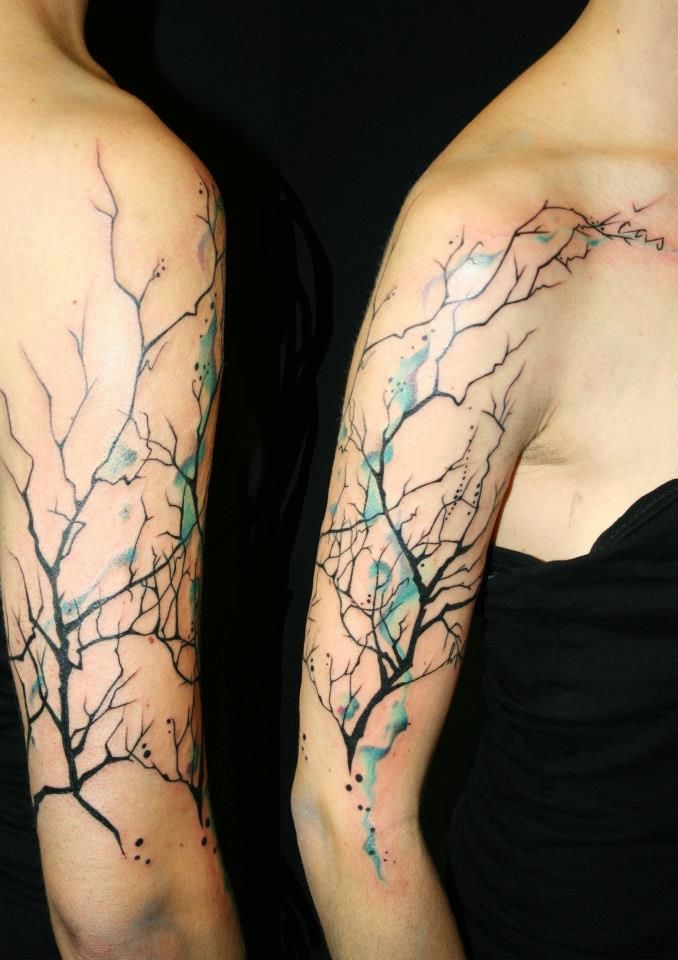 L'image d'une branche avec des fleurs signifie la fertilité, une richesse d'idées et une vie florissante. Une branche avec des feuilles est un symbole de vie et de foi en l'avenir. Une branche avec des feuilles fanées parlera d'un désir ardent, d'un défunt ou d'événements qui causent de la tristesse. Une branche avec des fruits attirera chance et richesse, deviendra un véritable talisman de prospérité pour son propriétaire. Branches de tatouage avec des fruits sur le corps de la femme est une fertilité importante. Une branche portant un oiseau vous renseignera sur la foi en l'avenir et sur une attitude positive à l'égard de la vie.
