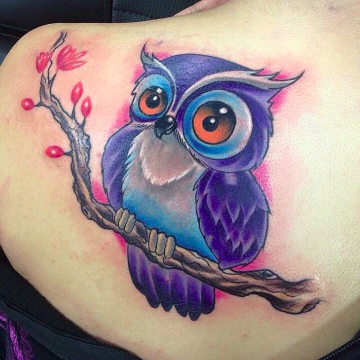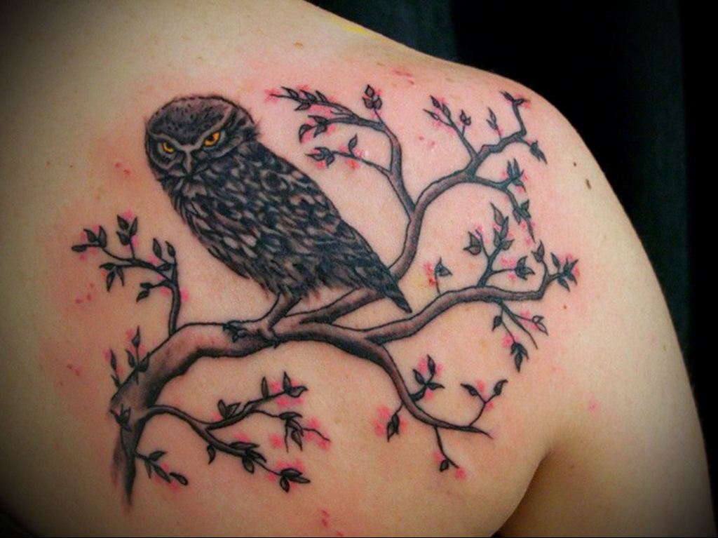 Une personne portant un tatouage de hibou sur une branche veut montrer aux autres sa beauté externe et interne. Une telle image est appliquée à n'importe quelle partie du corps. Et peu importe la taille, un tatouage avec un oiseau sur une branche est très joli.