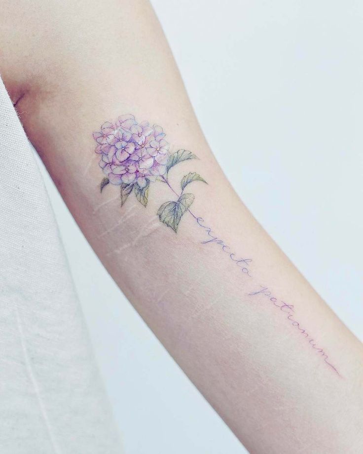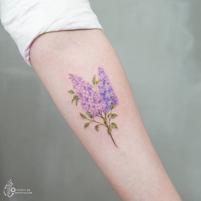 Un tatouage avec une branche lilas symbolise le printemps et le premier amour, la séparation et la tristesse. En règle générale, le tatouage d'une branche de lilas est appliqué par une personne qui veut se souvenir du premier amour. On croit qu'un tatouage d'une branche de lilas autour du poignet apportera de la chance et du succès à son propriétaire. Un tatouage d'une branche de lilas enlacée de lierre est très harmonieux et magnifique. Où et quelle taille mettre un motif portable avec des lilas dépend de son propriétaire. Tout dépendra du désir.