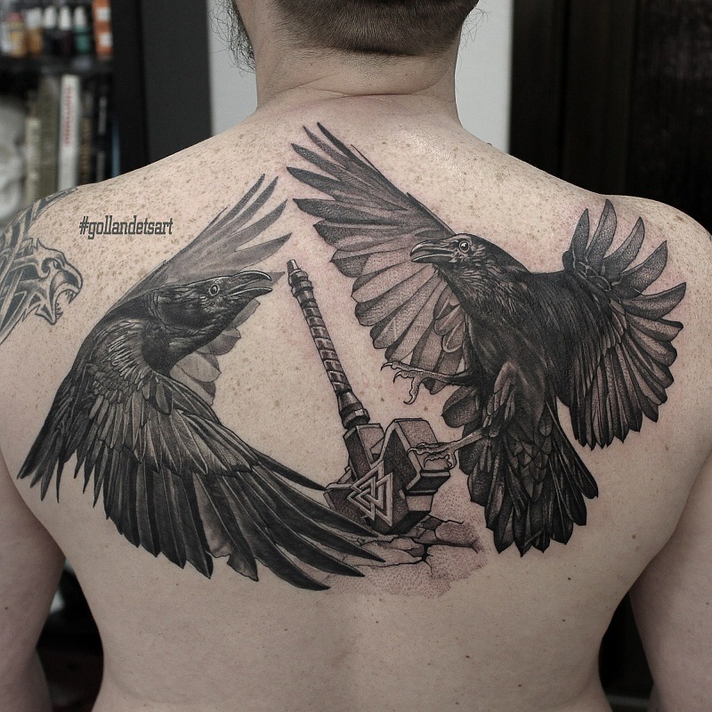 - Tatouage Corbeau au dos