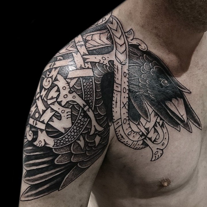 Tatouage corbeau sur l'épaule