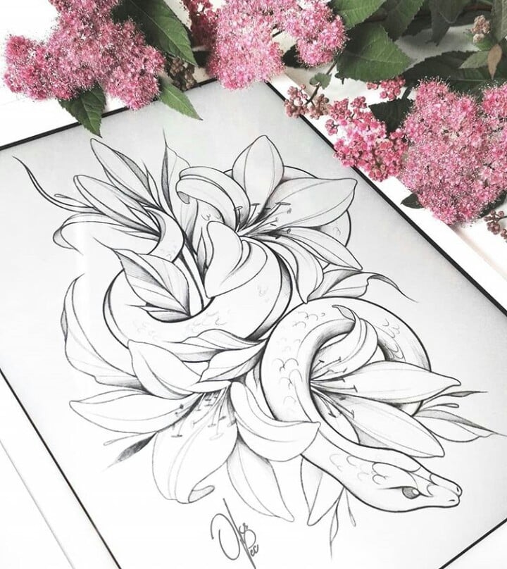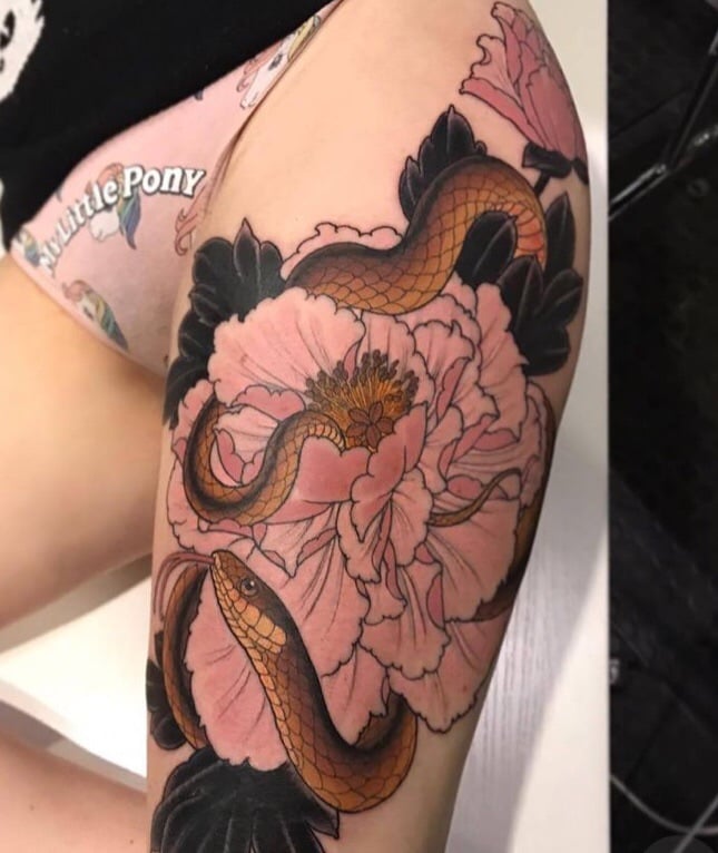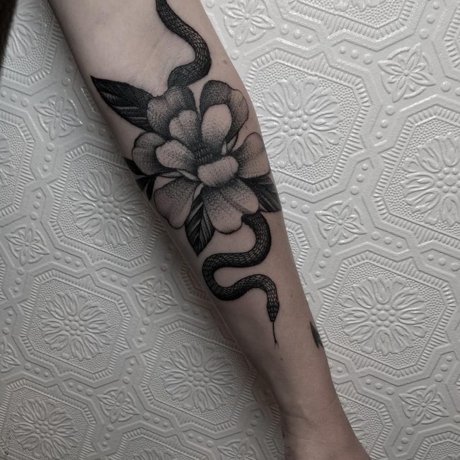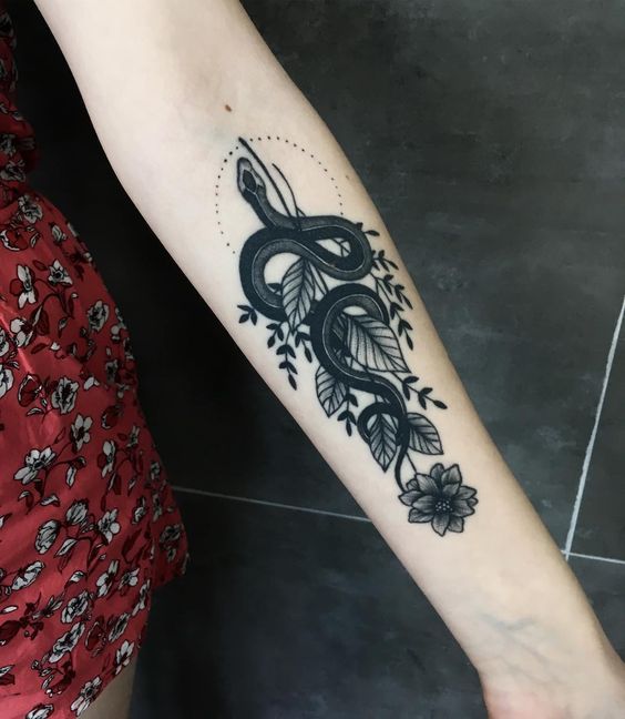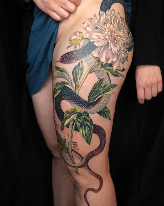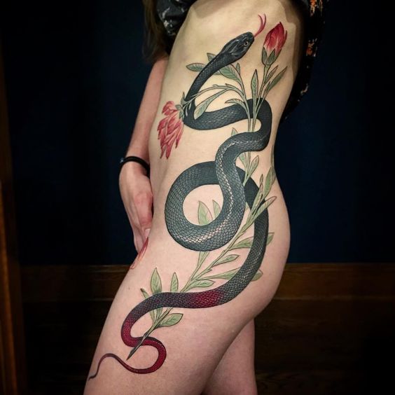 Tatouages de serpents spectaculaires avec des fleurs