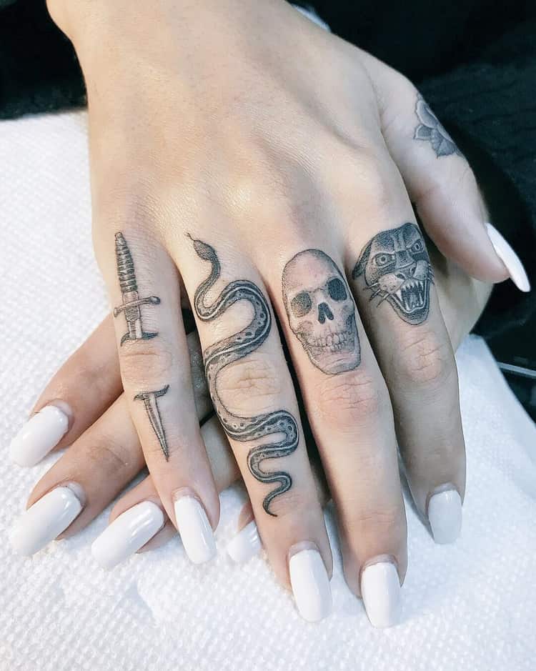 Ainsi, le tatouage d'un serpent à la peau renouvelée symbolise la résurrection, la renaissance et la jeunesse. Un tel tatouage caractérise le propriétaire comme une personne qui a radicalement revu sa position dans la vie. Un symbole de constance, d'infini et d'éternité est un tatouage circulaire pectoral, où un serpent avale sa queue. Les serpents de feu sont synonymes de prospérité et le cobra est généralement considéré comme un dessin des déesses.