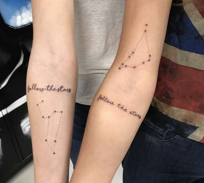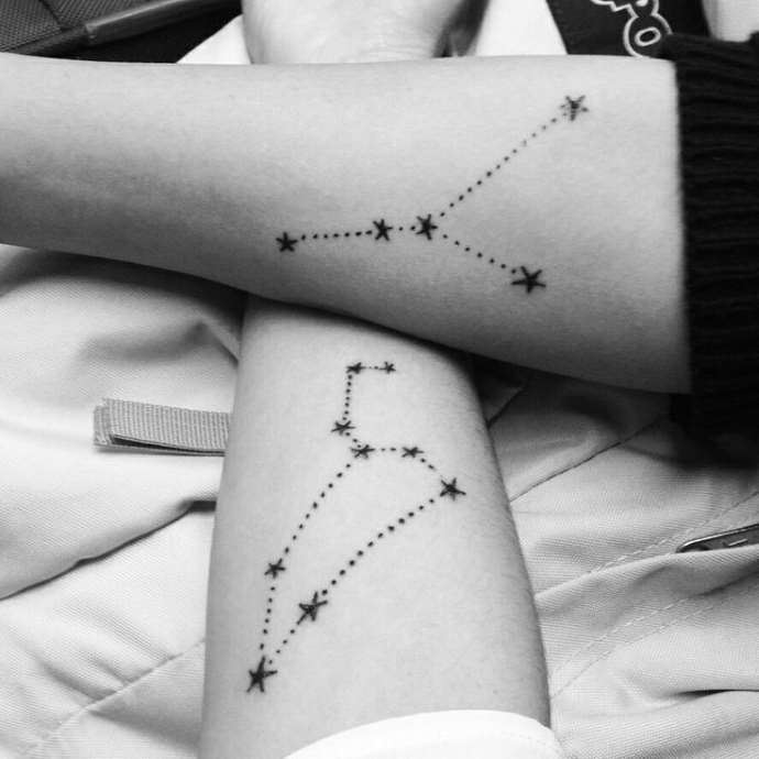 Contrairement aux deux personnages précédents, les jumeaux sont toujours particulièrement changeants, sociables et intelligents. Les représentants du signe sont le plus souvent des adversaires de la routine et parviennent à faire beaucoup de choses en même temps. Par conséquent, les tatouages avec l’image du signe ne sont le plus souvent pas trop volumineux. Ce peut être un symbole laconique, une image de personnes et d’autres options similaires.