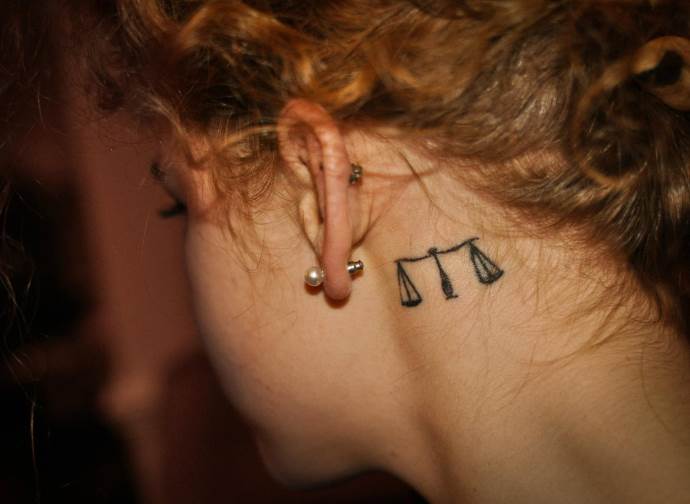 Le plus souvent, les tatouages sont faits sous la forme d'une balance en déséquilibre ou en équilibre. Mais il y a d'autres options qui ont l'air très originales. Ils sont fabriqués principalement sur le bas du dos, les épaules, le cou ou les bras.