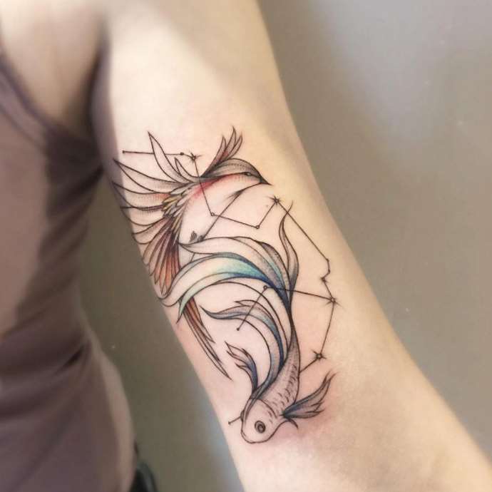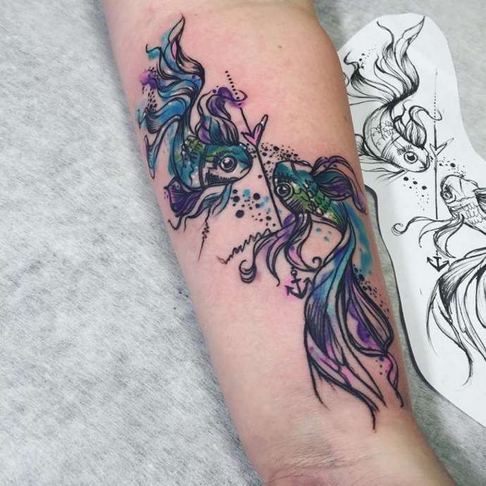 Un tatouage avec une photo d'un poisson est choisi par des personnes qui dans la vie manquent de confiance en elles. Mais les représentants du signe eux-mêmes ne sont pas en conflit, ils ont développé l'intuition.