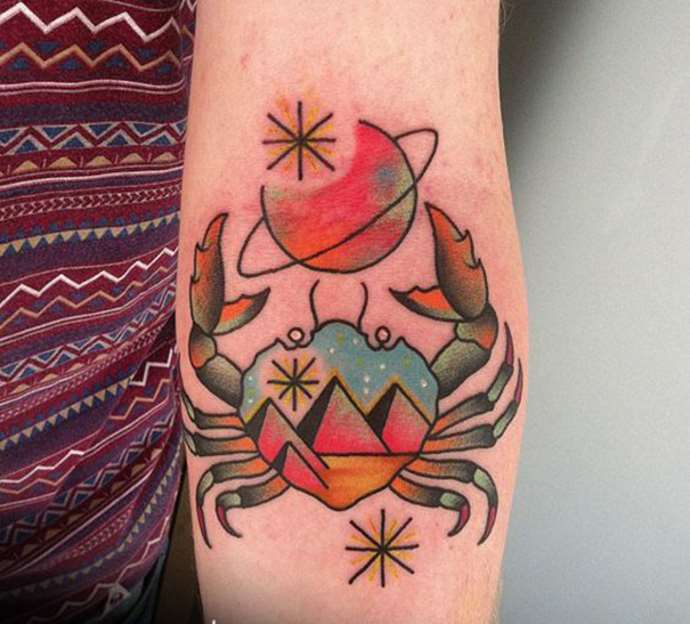 Les représentants incroyablement sensuels, émotionnels et émotionnels du signe font souvent de tels tatouages. Cela est particulièrement vrai du beau sexe. Le fait est que les hommes se font rarement tatouer sous forme de cancer. Néanmoins, la photo est très belle, quel que soit le style choisi. Le plus souvent, il est appliqué sur le dos, la base du cou ou le bras.