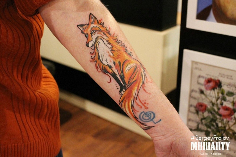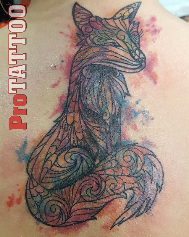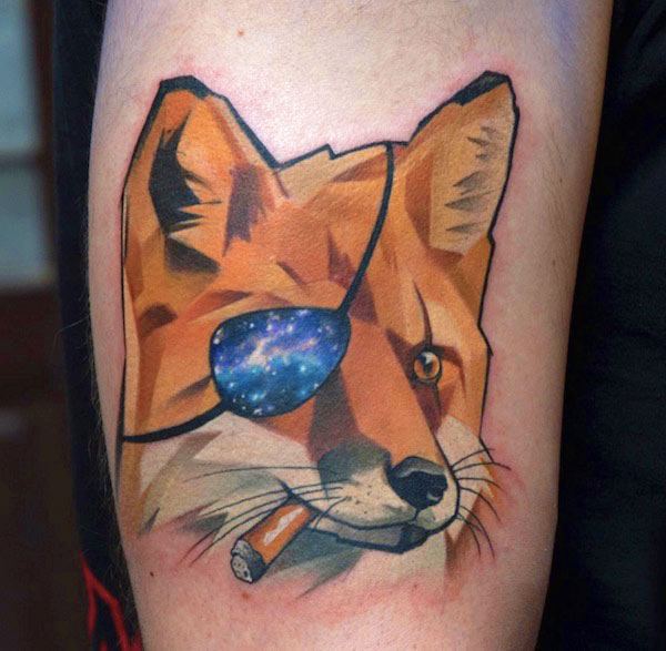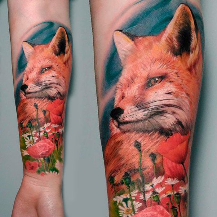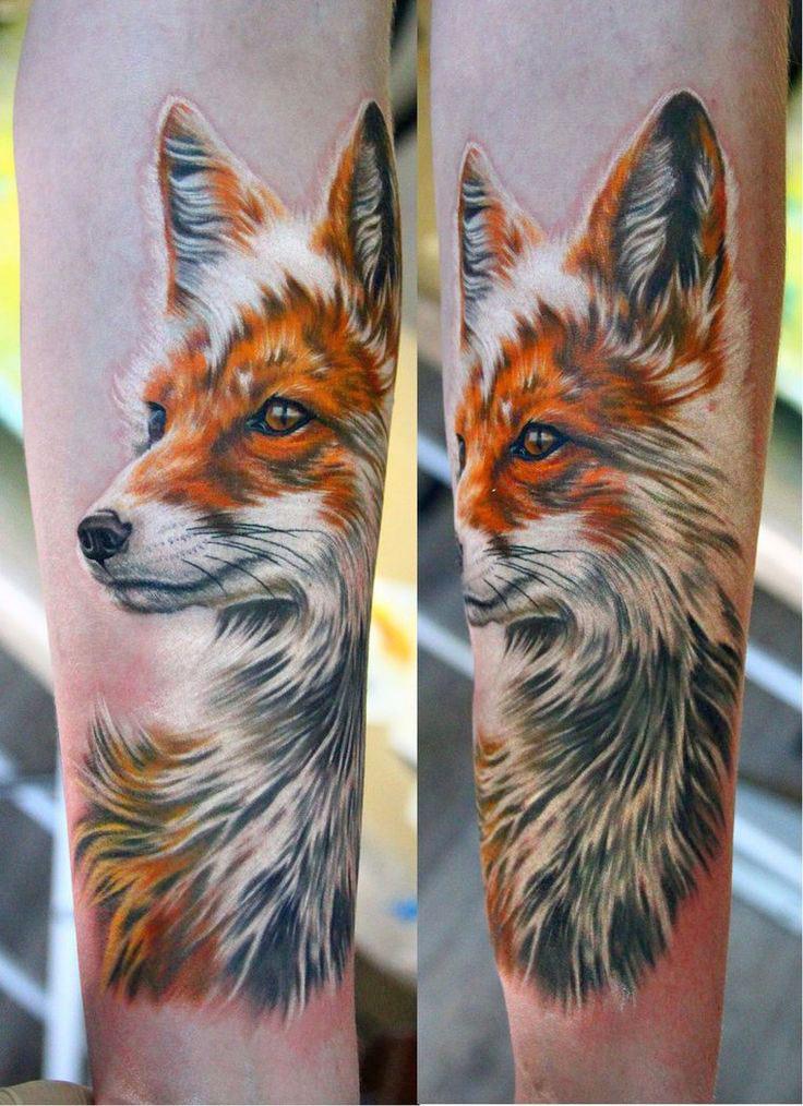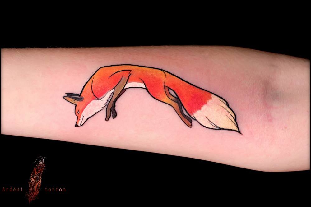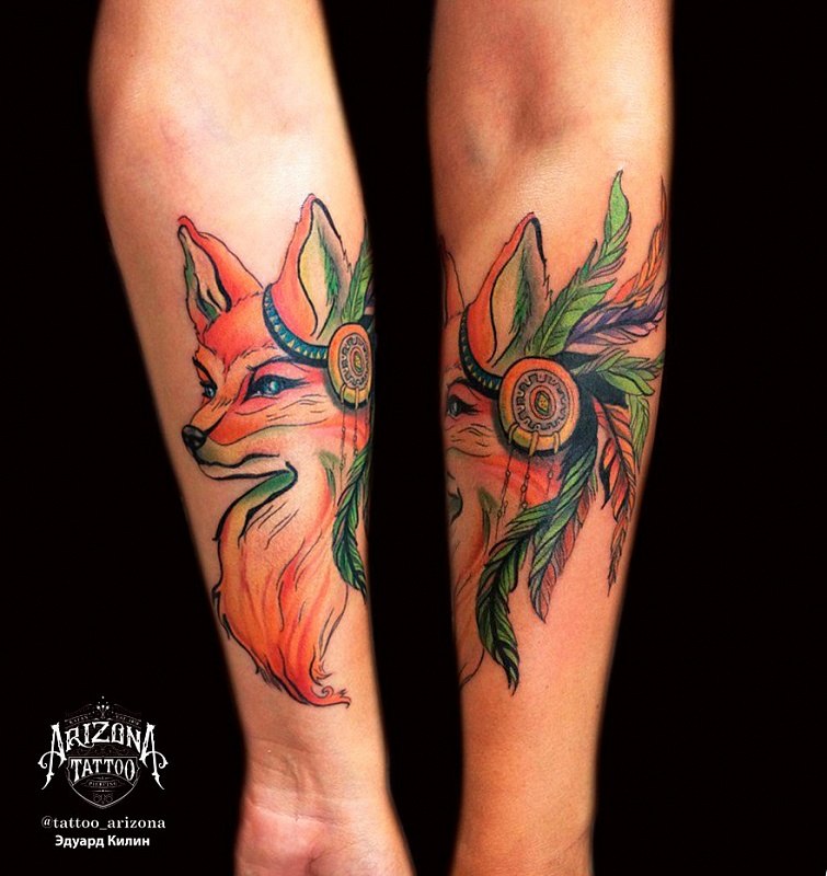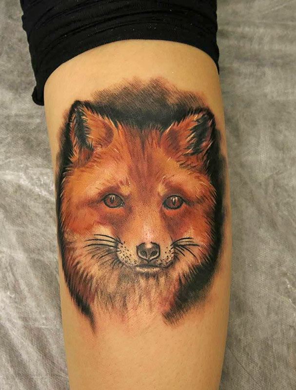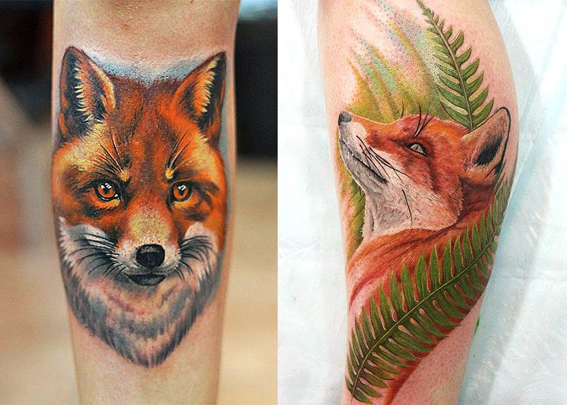 Le renard est l’animal le plus rusé et prudent. C'est une bête prédatrice difficile à attirer par un piège. De nombreux peuples chantent un animal sauvage dans leurs chansons et leurs légendes. Mais il y a aussi de telles nations qui n'aiment pas le tricheur rouge. Un tatouage avec un ornement de renard est populaire parmi le beau sexe. L'image du renard est réalisée dans une couleur traditionnelle (nuances de rouge vif). Un tatouage de ce format est le plus souvent appliqué pour décorer l'avant-bras, la partie inférieure de la jambe et les omoplates.