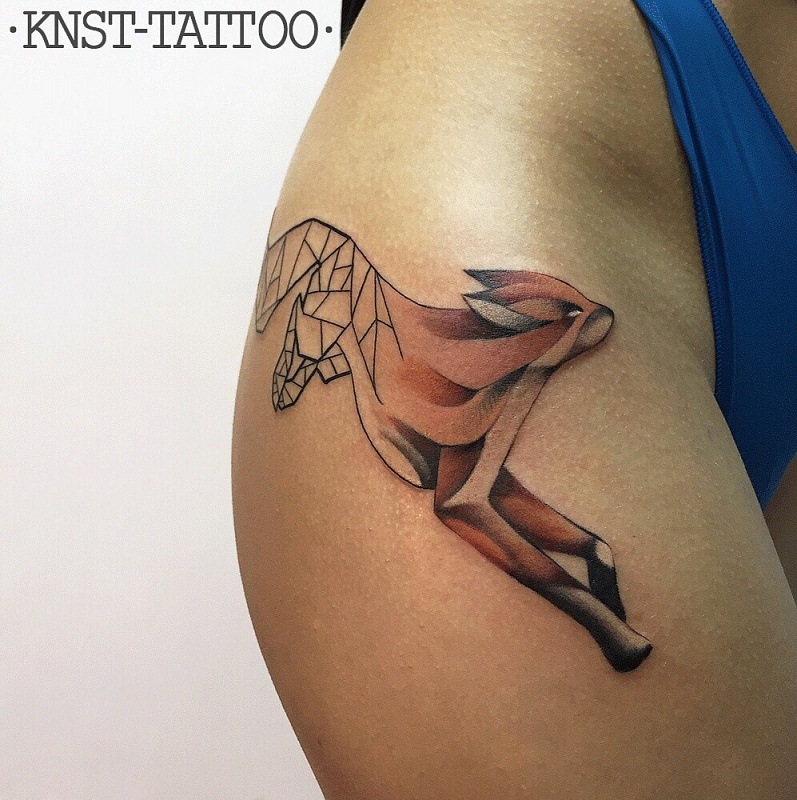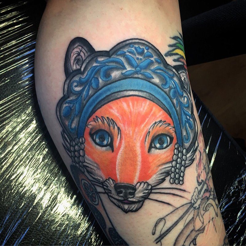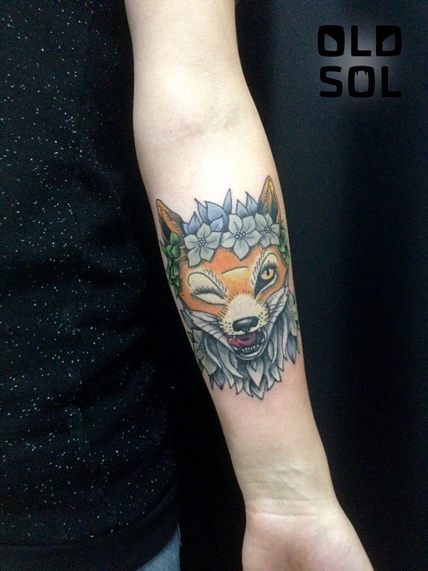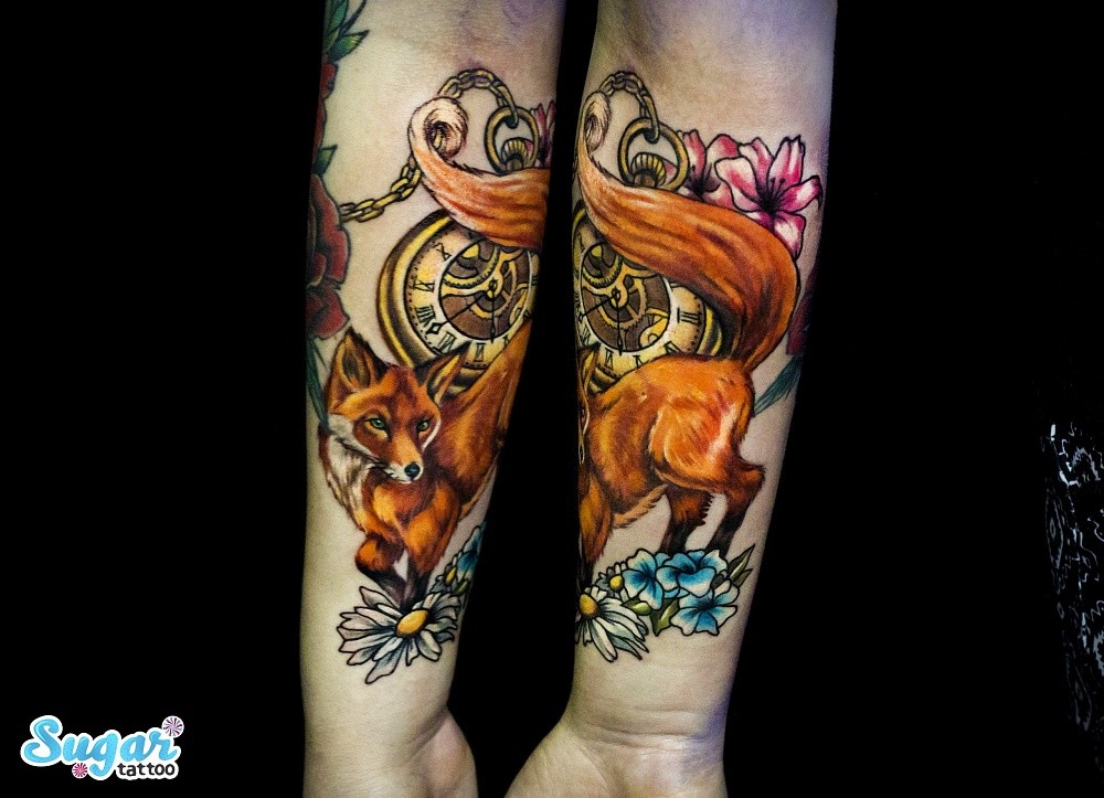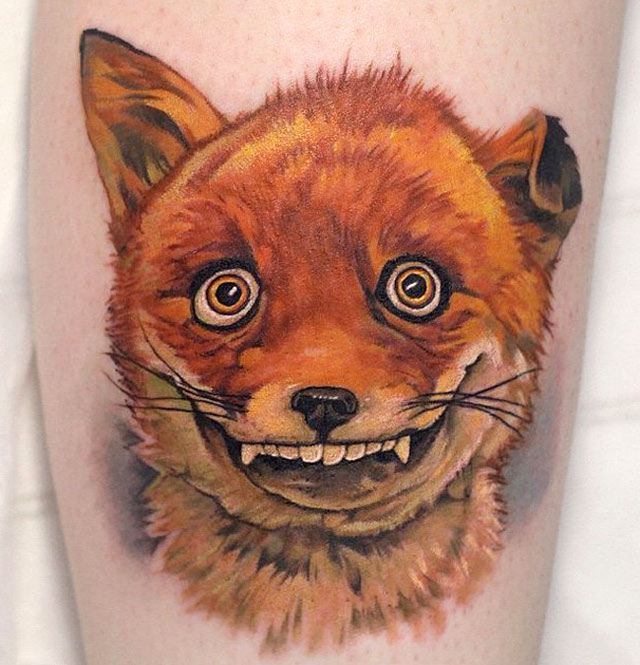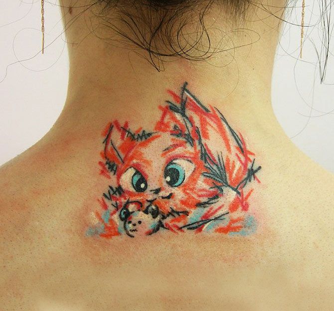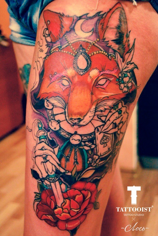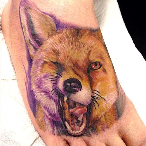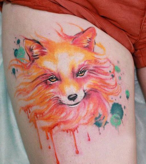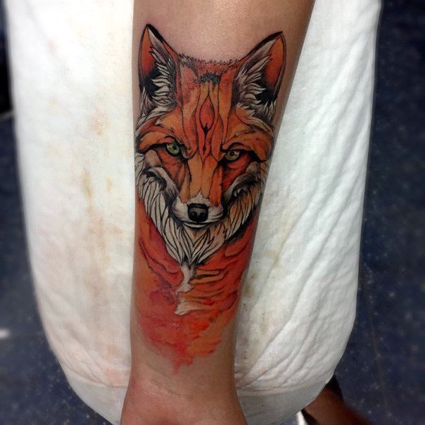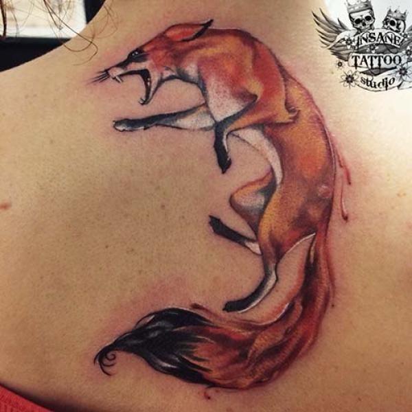 Le renard est l’animal le plus rusé et prudent. C'est une bête prédatrice difficile à attirer par un piège. De nombreux peuples chantent un animal sauvage dans leurs chansons et leurs légendes. Mais il y a aussi de telles nations qui n'aiment pas le tricheur rouge. Un tatouage avec un ornement de renard est populaire parmi le beau sexe. L'image du renard est réalisée dans une couleur traditionnelle (nuances de rouge vif). Un tatouage de ce format est le plus souvent appliqué pour décorer l'avant-bras, la partie inférieure de la jambe et les omoplates.