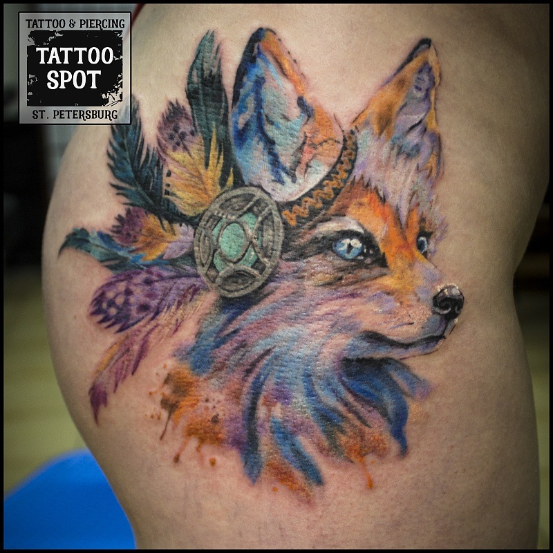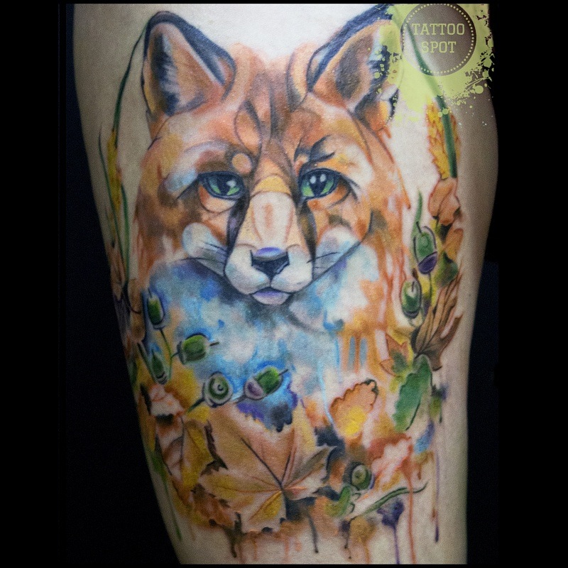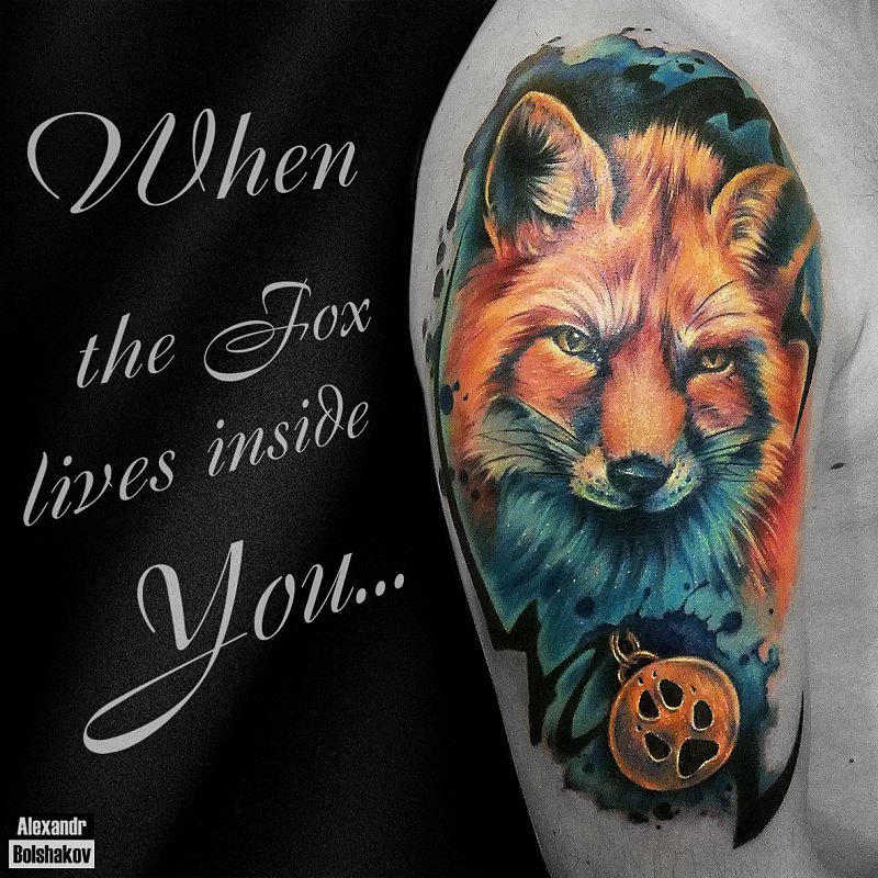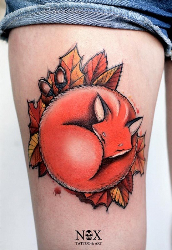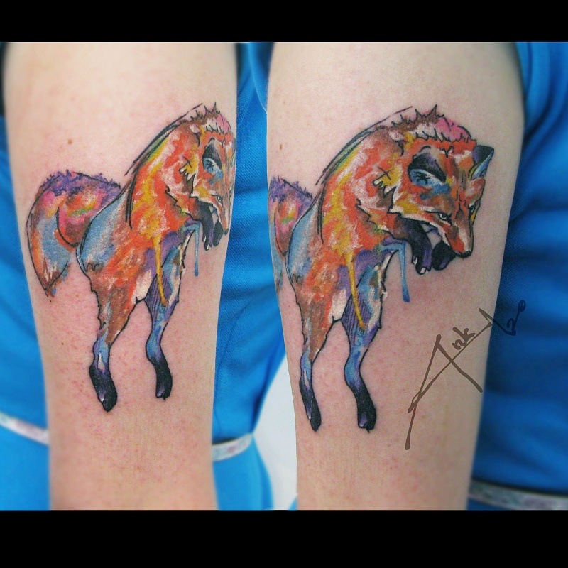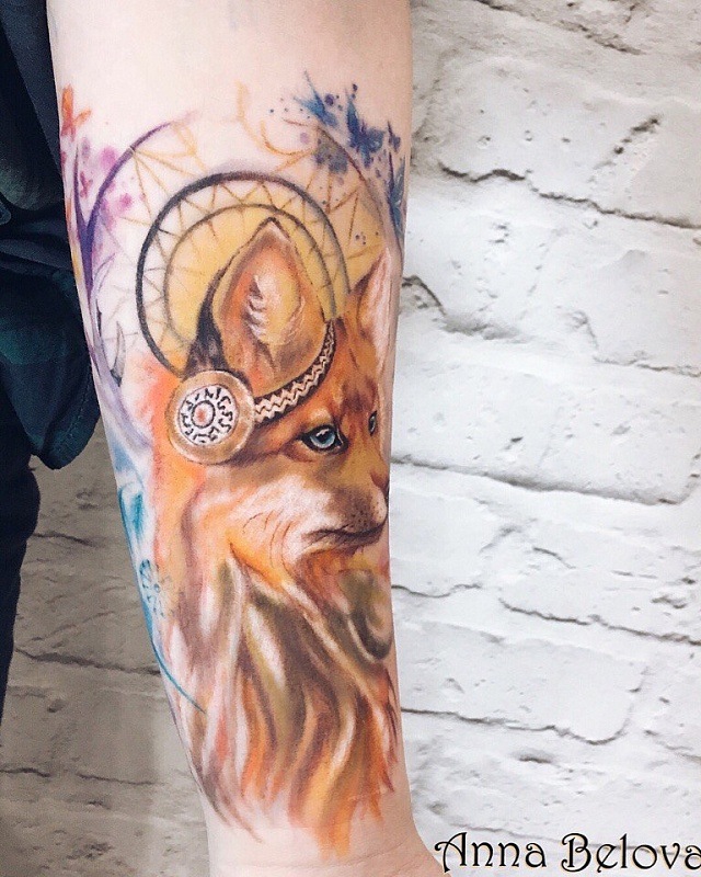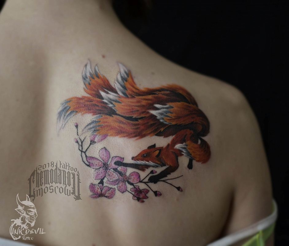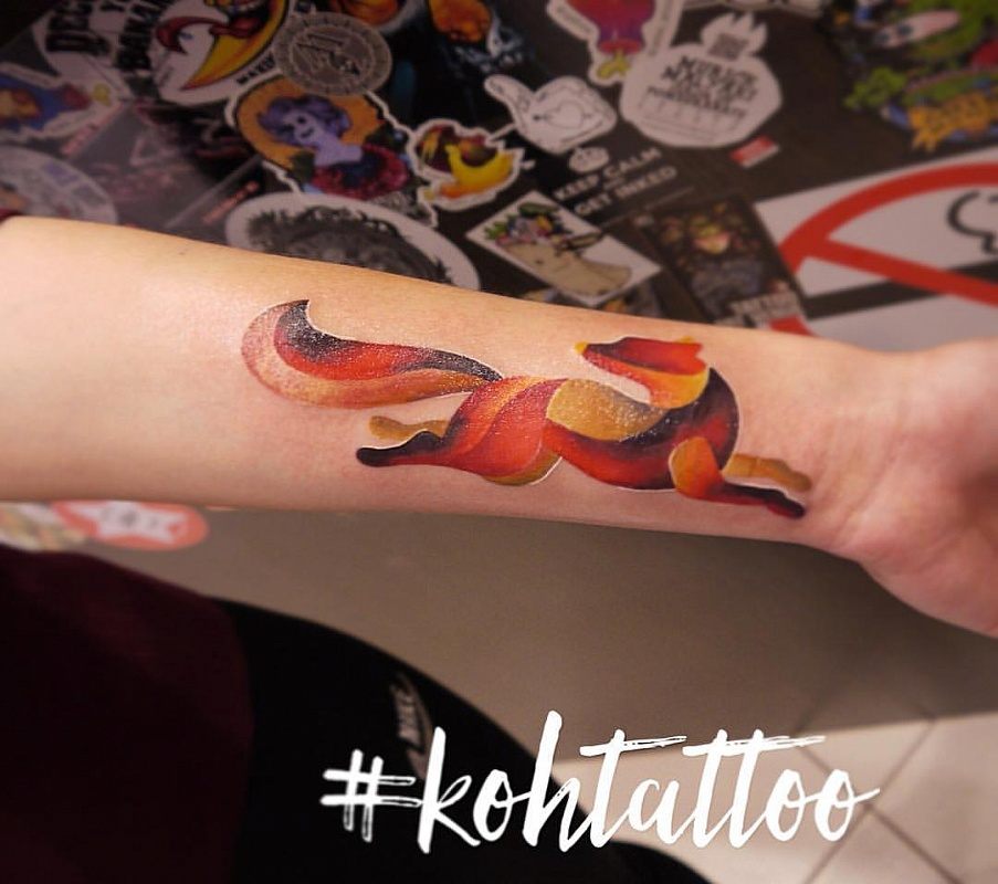 Le renard est l’animal le plus rusé et prudent. C'est une bête prédatrice difficile à attirer par un piège. De nombreux peuples chantent un animal sauvage dans leurs chansons et leurs légendes. Mais il y a aussi de telles nations qui n'aiment pas le tricheur rouge. Un tatouage avec un ornement de renard est populaire parmi le beau sexe. L'image du renard est réalisée dans une couleur traditionnelle (nuances de rouge vif). Un tatouage de ce format est le plus souvent appliqué pour décorer l'avant-bras, la partie inférieure de la jambe et les omoplates.