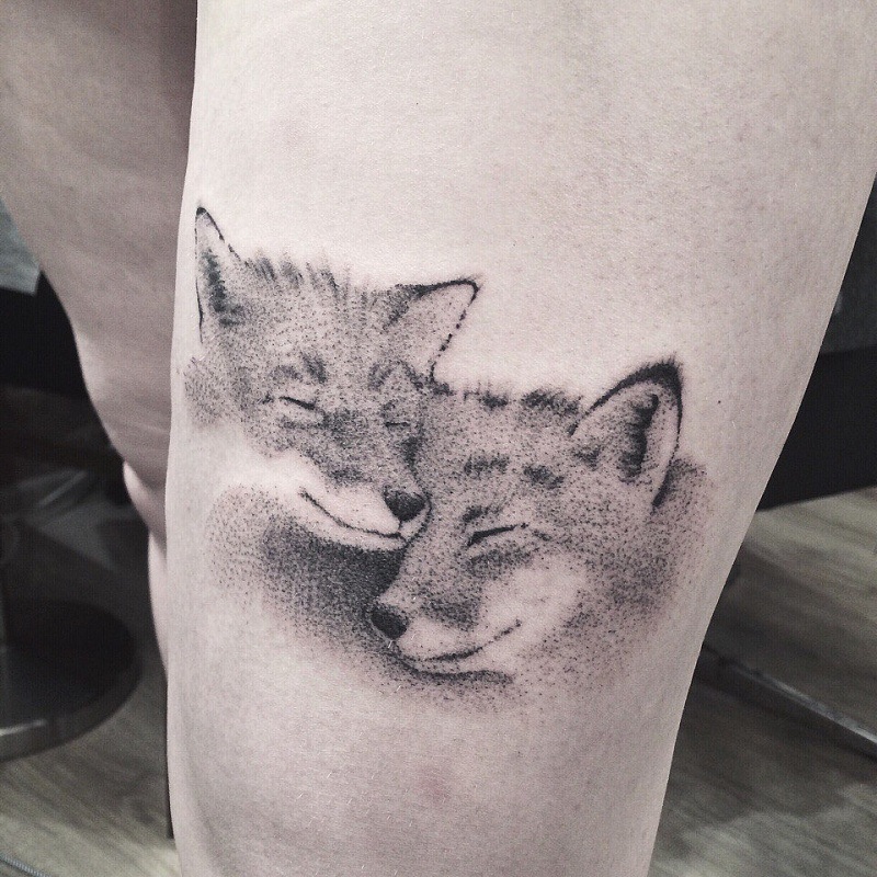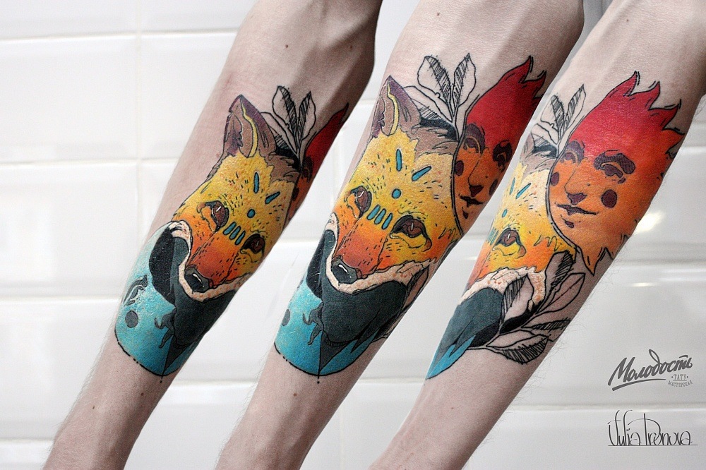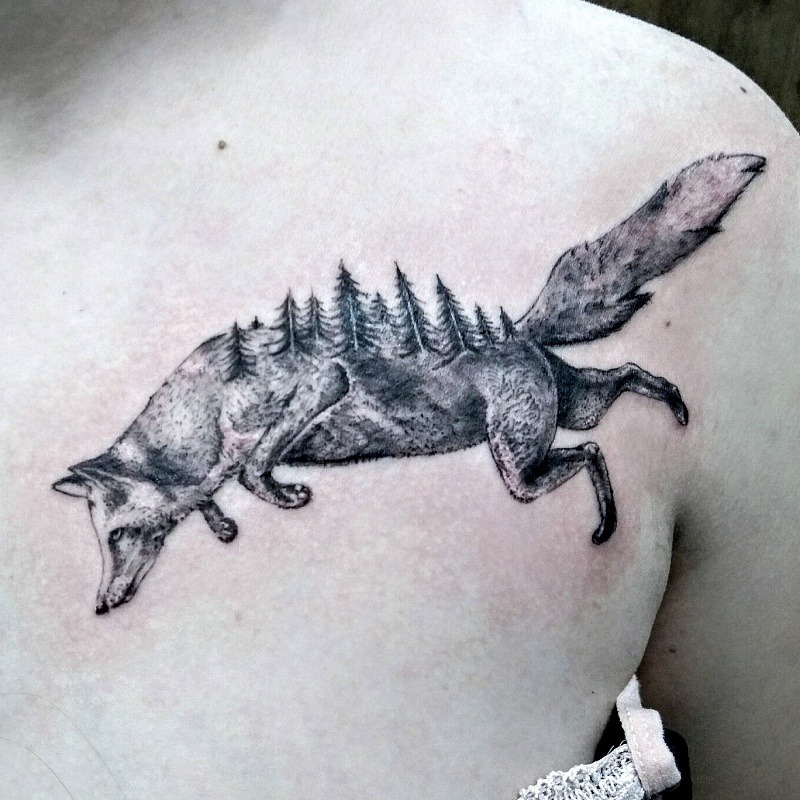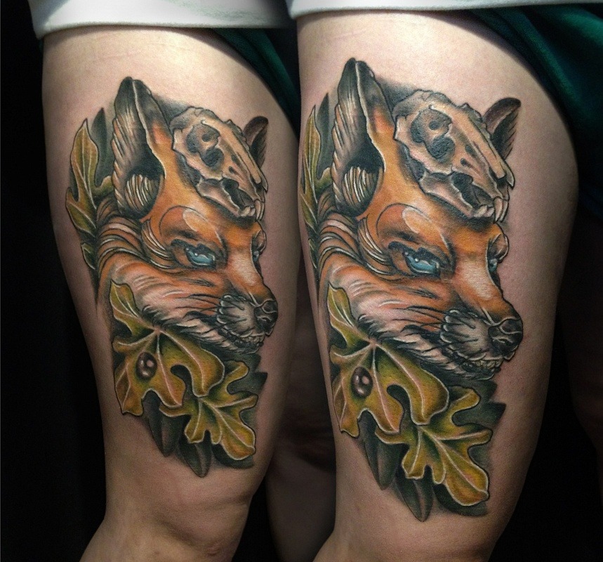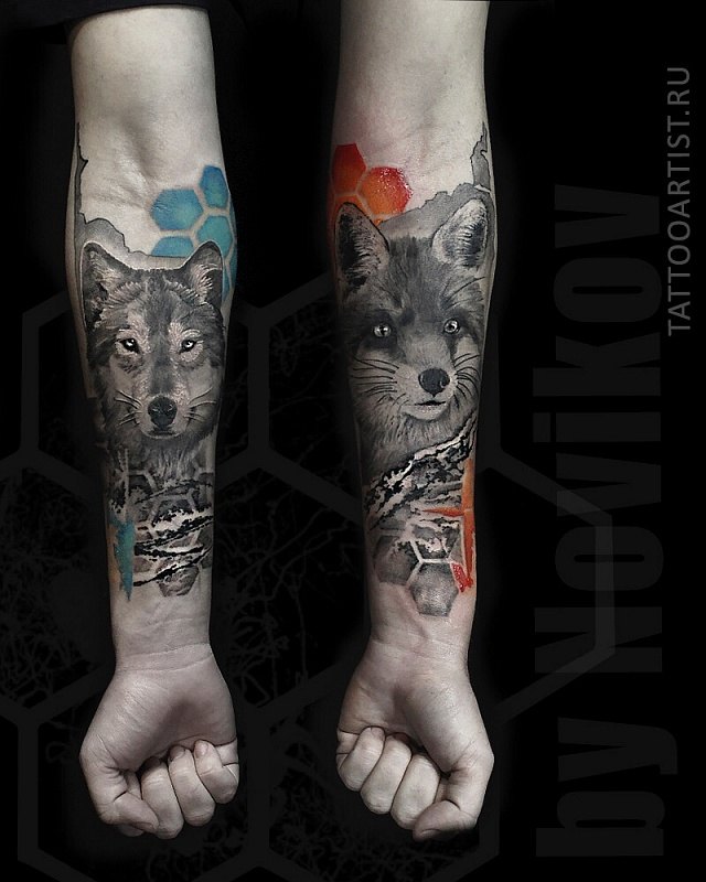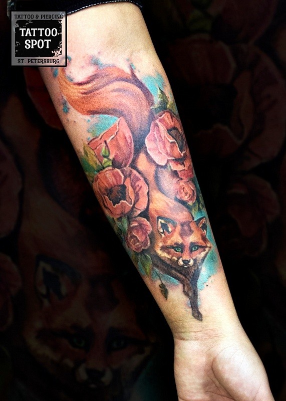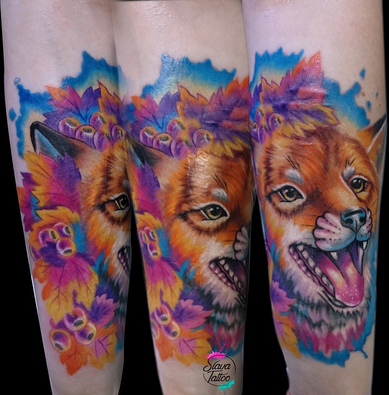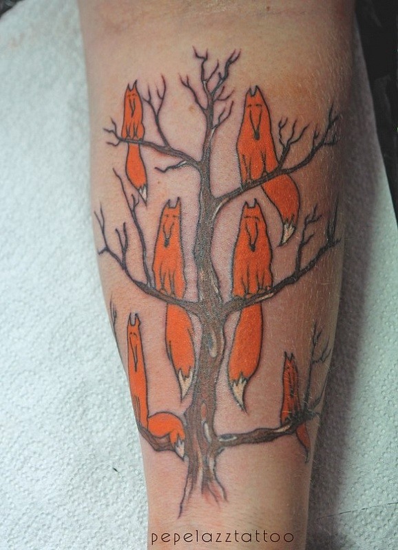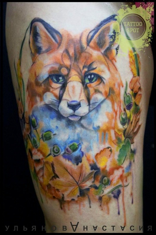 Le renard est l’animal le plus rusé et prudent. C'est une bête prédatrice difficile à attirer par un piège. De nombreux peuples chantent un animal sauvage dans leurs chansons et leurs légendes. Mais il y a aussi de telles nations qui n'aiment pas le tricheur rouge. Un tatouage avec un ornement de renard est populaire parmi le beau sexe. L'image du renard est réalisée dans une couleur traditionnelle (nuances de rouge vif). Un tatouage de ce format est le plus souvent appliqué pour décorer l'avant-bras, la partie inférieure de la jambe et les omoplates.