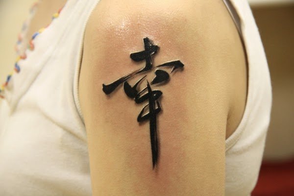 Les hiéroglyphes simples appliqués à l'épaule peuvent parfois avoir une signification plus profonde qu'une longue inscription. Parfois, ils peuvent être des phrases entières. Une fille peut combiner de tels tatouages avec de petits dessins - étoiles, cœurs, fleurs, dentelles, etc.