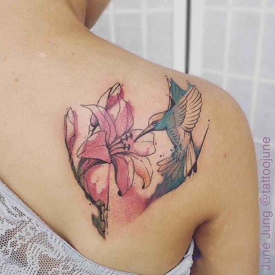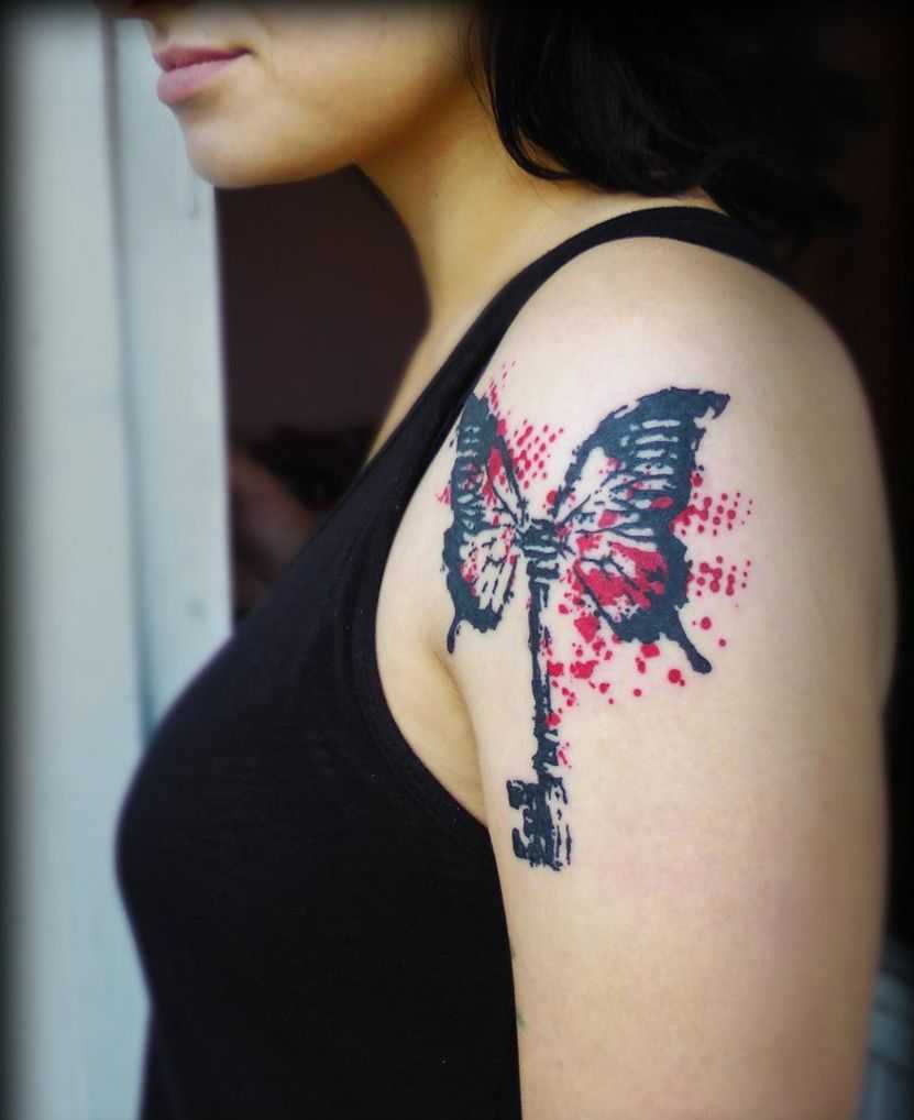 L’image d’un insecte sur l’épaule de la fille est assez courante. Chacune d’elles a sa propre signification et vous permet de transmettre le caractère de son propriétaire.