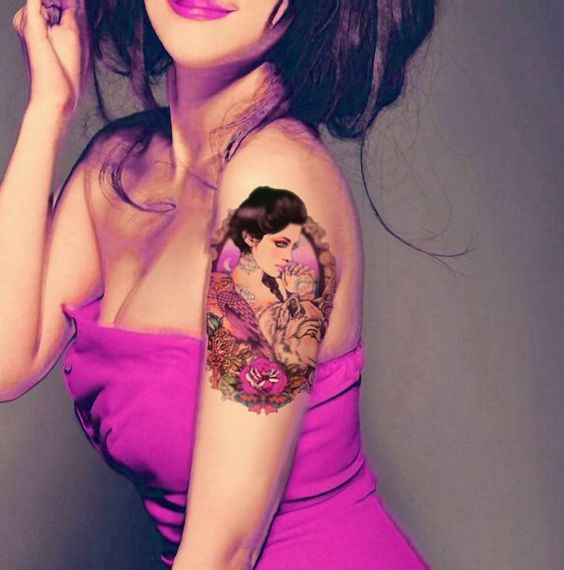 Dans ce cas, les êtres vivants réels et fictifs peuvent être dessinés. En choisissant un tel tatouage, une fille peut démontrer aux autres ses qualités personnelles.