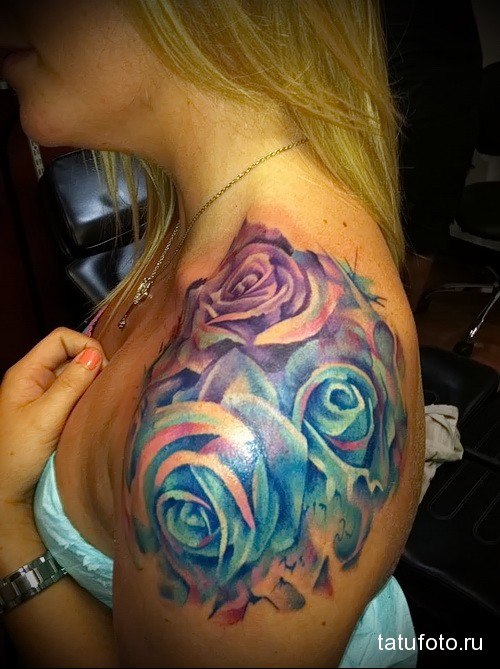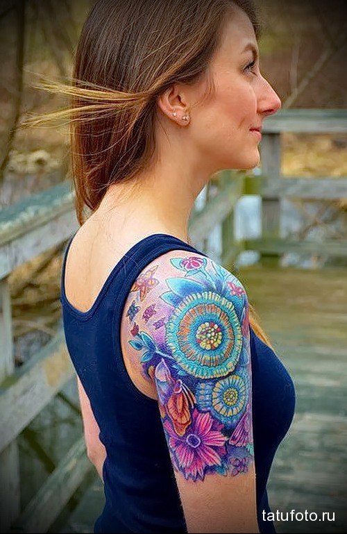 Le tatouage permet à la fille non seulement de se démarquer de l’arrière-plan des autres, mais aussi de montrer son caractère et son monde intérieur. Les épaules, de par leur forme, sont idéales pour appliquer une image de toute complexité: des images les plus simples aux images 3D.