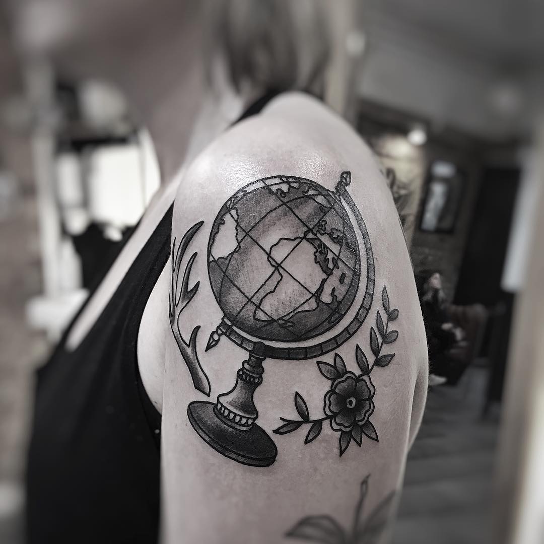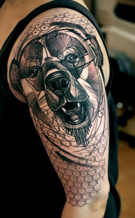 Une caractéristique de ce style est la prédominance du noir. Ainsi, vous pouvez appliquer sur l’épaule une figure géométrique simple et l’ensemble du tableau. Le travail au noir convient également à la restauration de tatouages anciens. Donc, avec l'aide d'un tatouage noir, vous pouvez habilement cacher un dessin ennuyeux ou ajouter une touche supplémentaire à l'image.