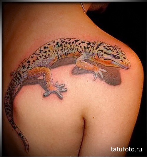Pas moins populaire et intéressant peut être un tatouage sur l'épaule sous la forme d'un reptile. Le plus souvent, les filles choisissent: