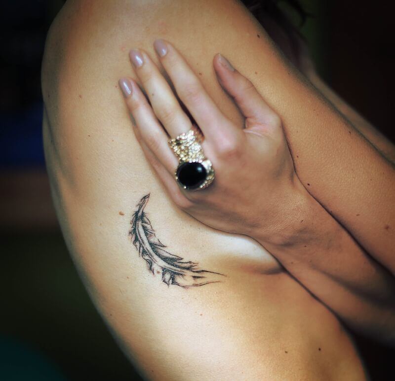 Le tatouage sur les côtes des filles est très populaire aujourd'hui, cela est particulièrement visible durant la saison estivale des plages. Le principal avantage d'un tel tatouage est la possibilité de le montrer au public ou, au contraire, de le cacher des regards indiscrets. Le motif pectoral sur les côtes soulignera parfaitement la beauté de la silhouette féminine et de la presse. C'est pourquoi le tatouage sur les côtes est souvent appliqué par les athlètes et les filles en forme au gymnase. Du côté féminin, un tatouage en forme d’inscription, de fleurs, d’oiseaux ou de plumes aura fière allure. L'inscription peut être courte, composée de plusieurs mots, ou volumineuse, contenant plusieurs phrases. De tels tatouages aujourd'hui peuvent souvent être trouvés dans les stars d'Hollywood. Les petits tatouages de cœur, de lune et de soleil, de roses ou de lis sont également très populaires auprès du beau sexe. L'image des animaux, par exemple des chats ou des lionnes, est belle et fascinante du côté féminin.Si une fille choisit un tatouage à l’image d’oiseaux, cela en dit long sur la légèreté de son caractère et sur une certaine légèreté de la nature.