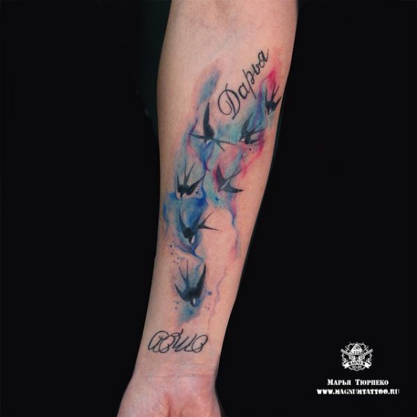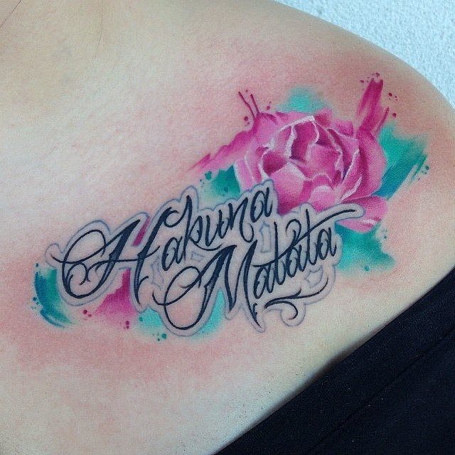 En bourrant un tatouage, tout le monde veut exceller. Pour ce faire, vous pouvez choisir une police inhabituelle ou choisir un jeu de couleurs accrocheur pour un tatouage. Pour fermer l’image non seulement belle, mais aussi unique, vous pouvez la compléter avec n’importe quel élément.