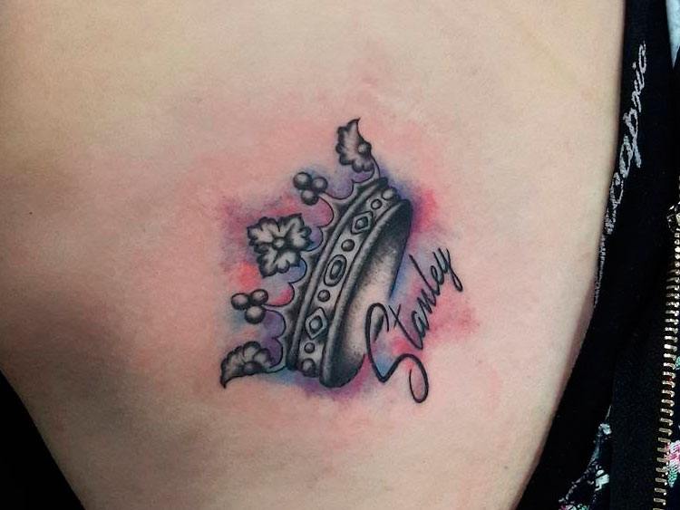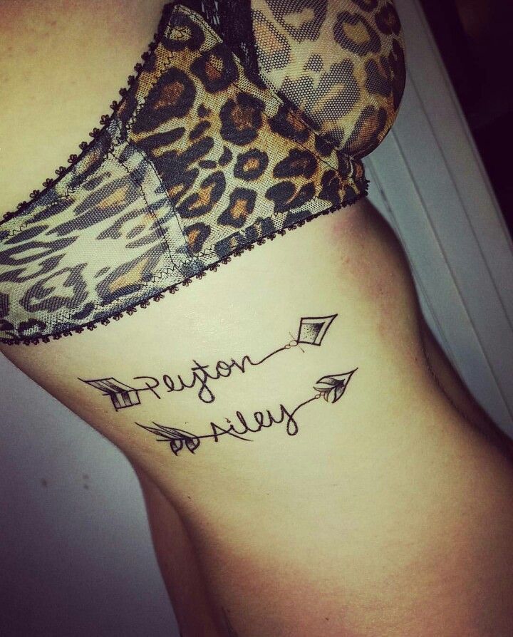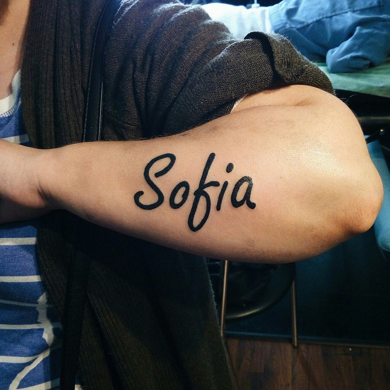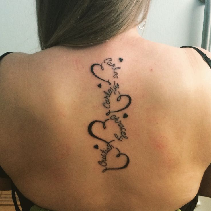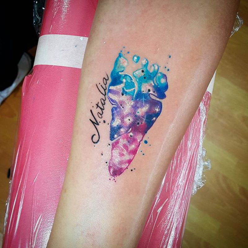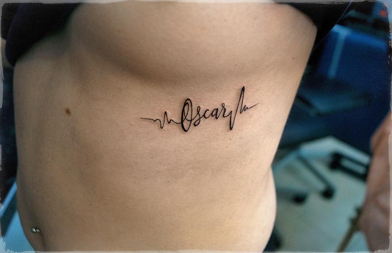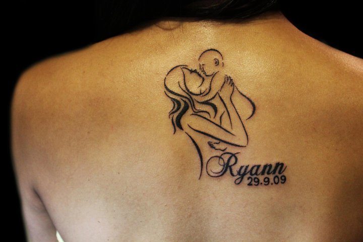 La naissance d'un enfant est un événement très important et solennel pour les deux parents. Par conséquent, très souvent, des parents heureux décident de se faire tatouer avec le nom de leur propre enfant. Très souvent, les noms des enfants sont complétés par leurs propres initiales ou par la date de naissance du bébé. Il y a souvent un portrait du bébé, réalisé dans le style du réalisme. Il est à noter qu'avant de réaliser un tel dessin, il est nécessaire qu'un peu de temps s'est écoulé depuis la naissance de l'enfant pour que son apparence se forme au moins un peu. Une option inhabituelle sera une inscription avec le nom de l'enfant en combinaison avec l'empreinte d'une jambe ou de cubes en jeu. Certains préfèrent mettre les noms des enfants sur la poitrine en signe de relation proche.