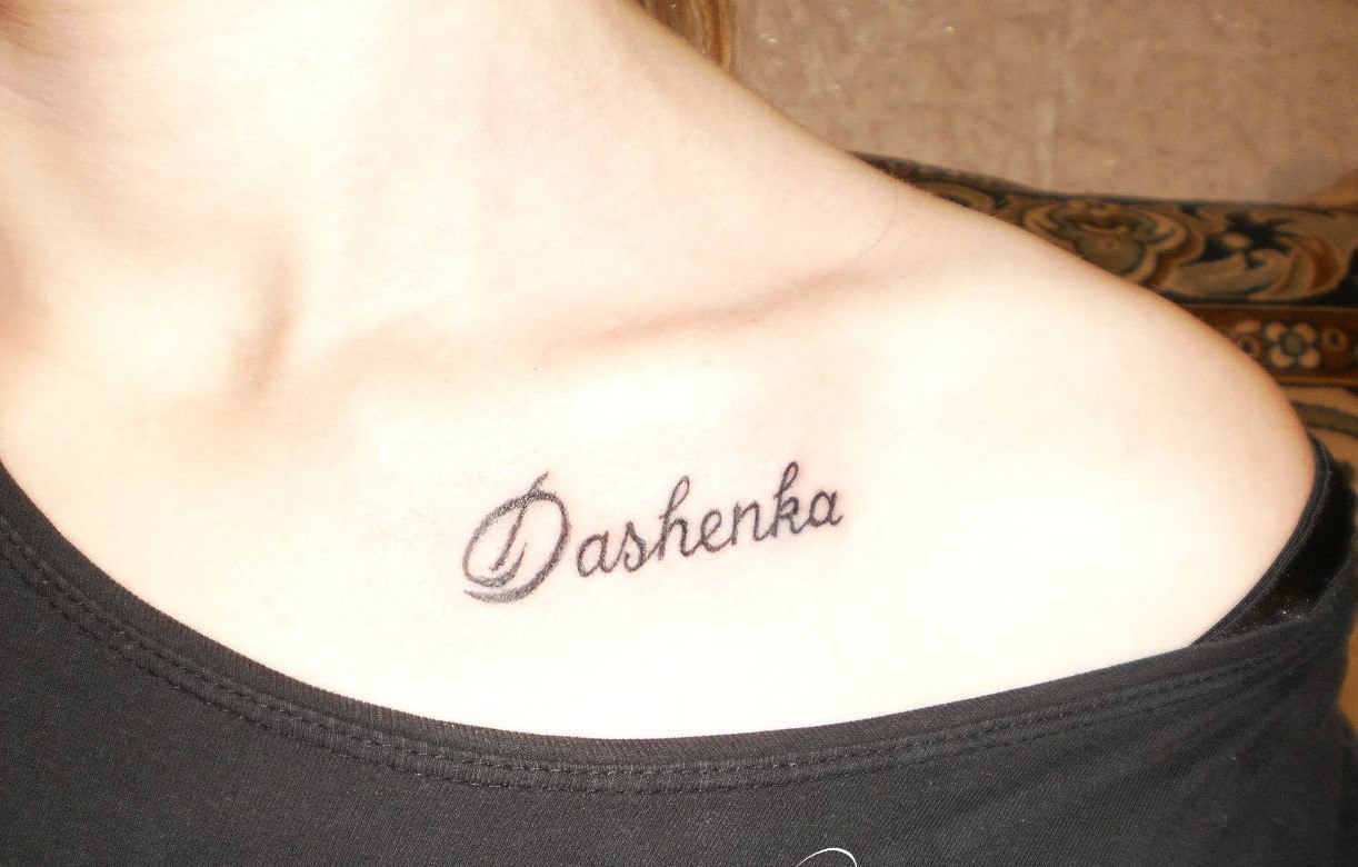 S'il y a déjà des tatouages sur le corps et que vous souhaitez simplement les compléter, vous pouvez le faire avec un nom ou des initiales. Il arrive qu'ayant décidé d'un croquis, les gens ne peuvent pas décider du lieu de leur application. Le plus souvent, les tatouages avec des noms sont appliqués sur les parties suivantes du corps: