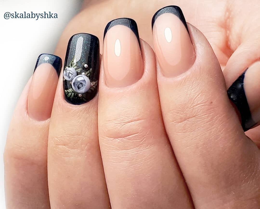 Pour les amateurs de classiques, le nouveau design des ongles offre des idées intéressantes pour la mise en œuvre du français. Les pointes sombres peuvent être réalisées avec un motif en marbre, utiliser de la poudre acrylique, ajouter des motifs délicats à un sourire sombre ou des accents étincelants pour une image plus solennelle.