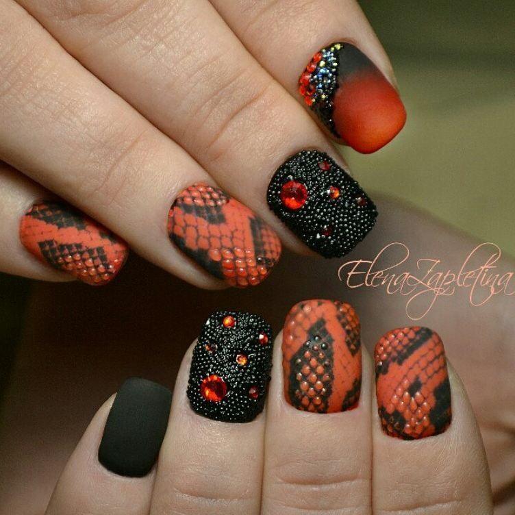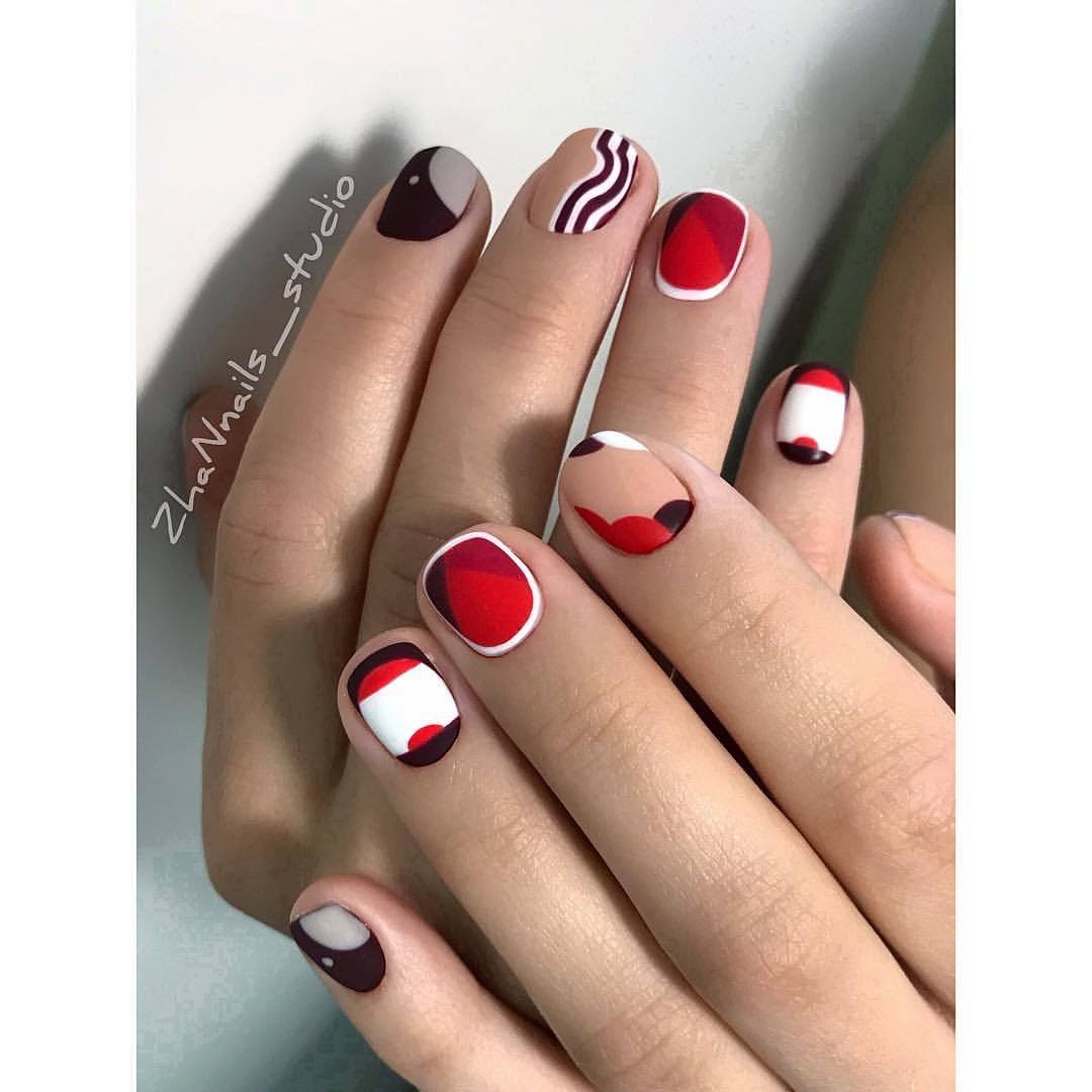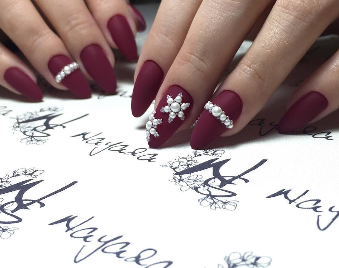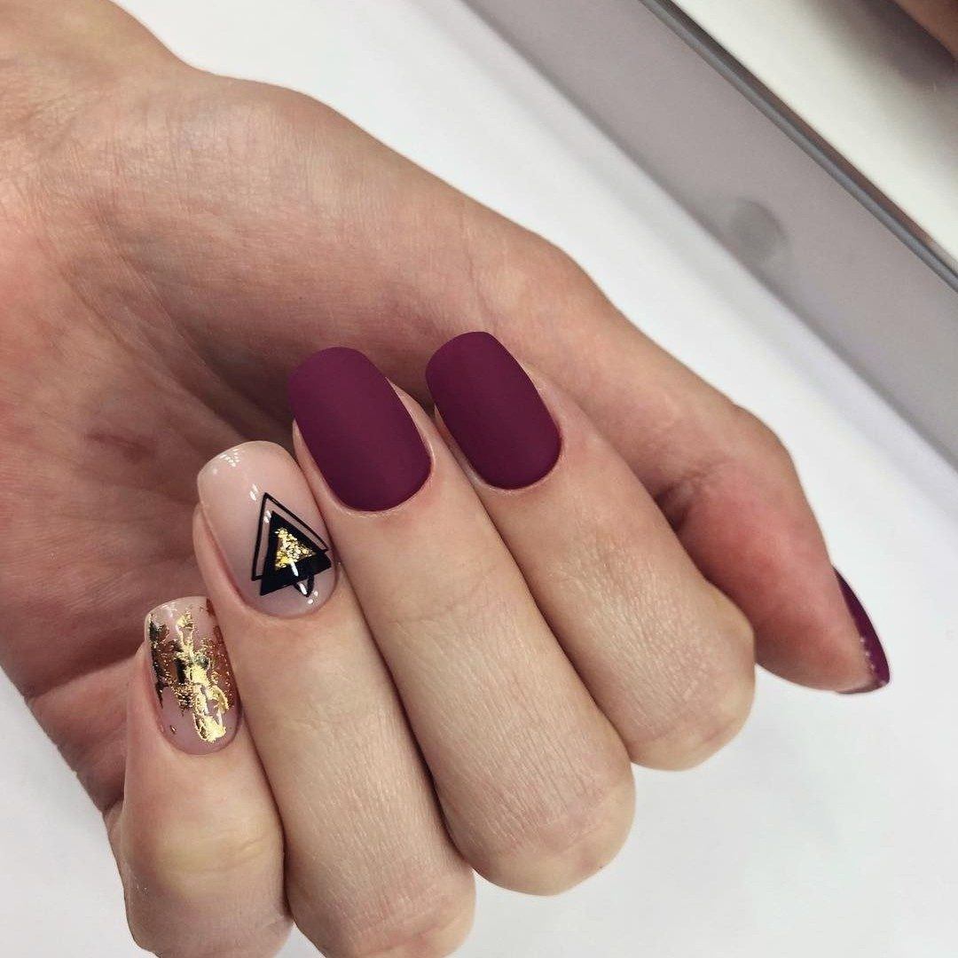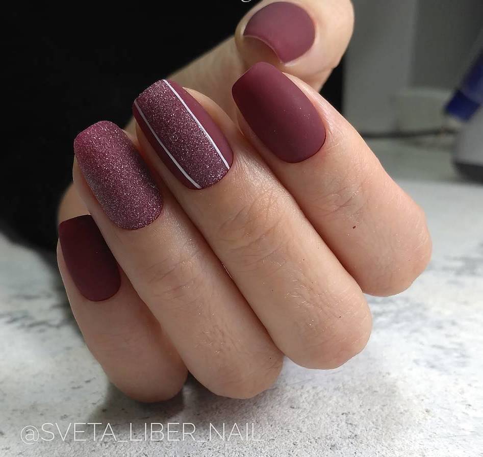 Cette saison, toutes les nuances de Bourgogne sont en demande. C'est un classique qui ne se démode jamais et qui convient à tout type de femme. Masters a proposé un grand nombre de techniques correspondant à cette palette de couleurs et révélant pleinement son potentiel. La couleur rouge, qui est prise comme base dans un duo avec du brun, est ravissante, à la fois sur les longues plaques à ongles pointues et sur une courte longueur. Il se marie parfaitement avec les notes dorées du design, il ressemble à un roi avec des pierres et est poudré.