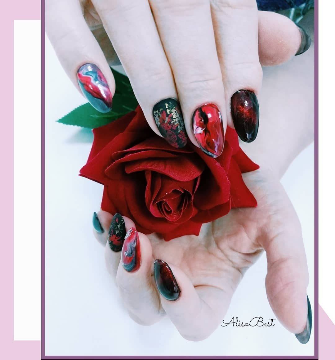 - Vert chic dans le nail art sombre