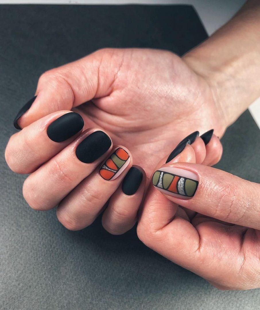 Idées de manucure sombres mates avec accent