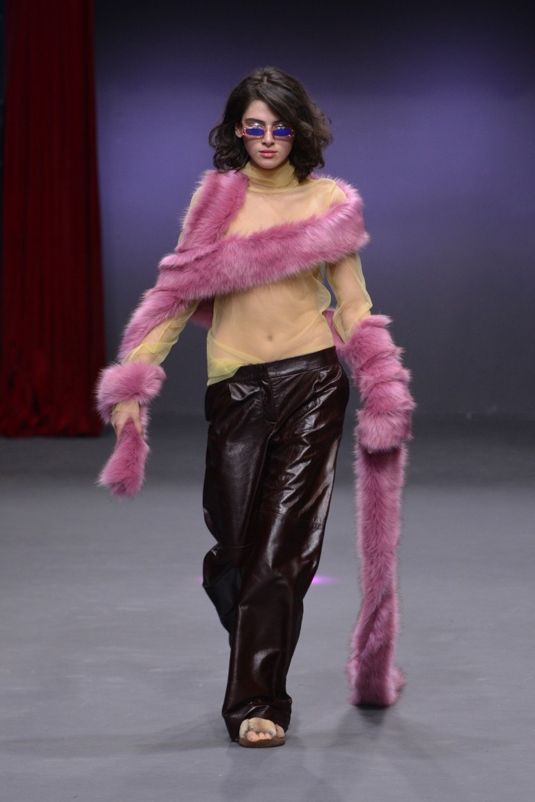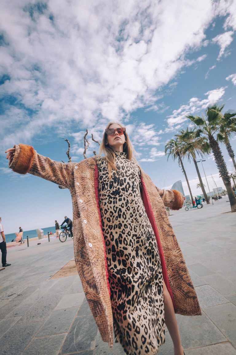 - différentes textures de tissu sont combinées, par exemple, une robe fluide légère et un manteau de fourrure;