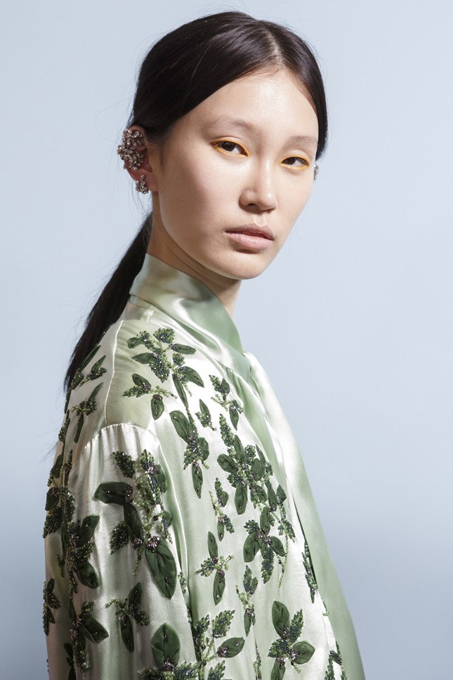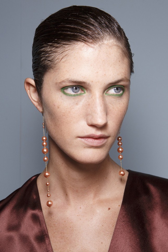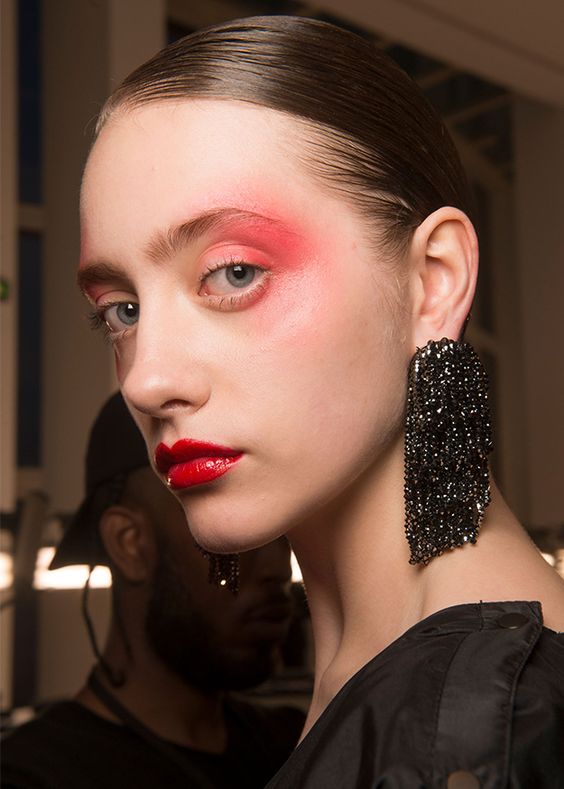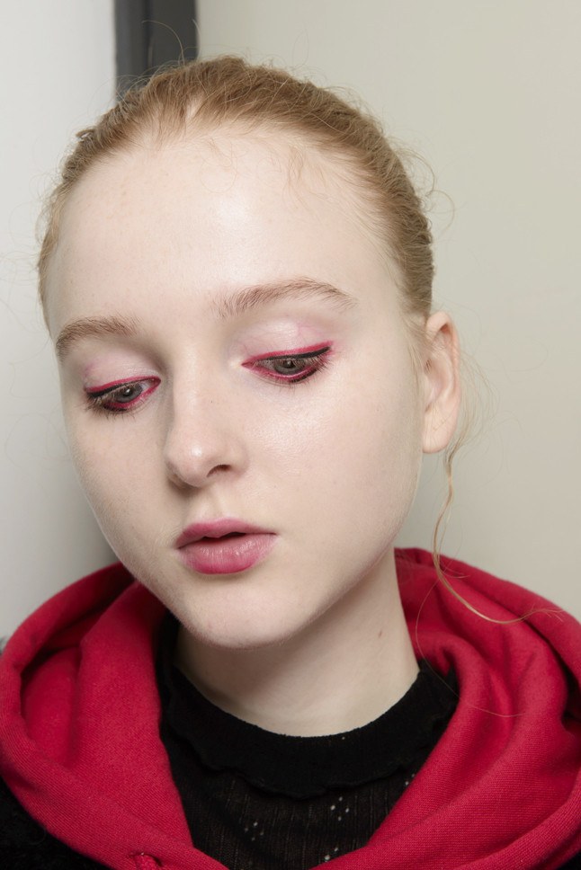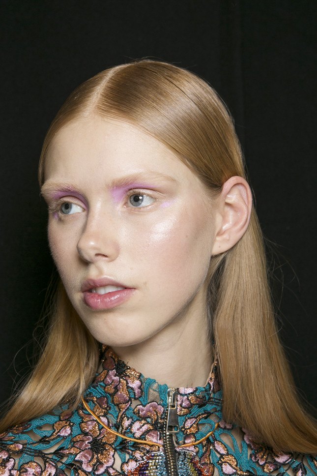 Malgré le fait que cette saison, toutes les couleurs sont au sommet de la mode, je voudrais accorder une attention particulière à la couleur rose délicate et légère qui orne tellement les jolies filles. Cette saison, toutes les nuances de rose seront à la mode - et partout: sur les pommes des joues, en manucure, sur les lèvres et les paupières. Une belle addition: cette couleur est visage très jeune et lui donne un look frais et reposé. Vous pouvez répéter après les maquilleurs avec "Altuzarra" et appliquer des tons généreusement mats de pêche et de rose sur les paupières. Cette image est dorée pour correspondre aux ombres - une fois et c'est fait! Il existe une autre option très intéressante: nous peignons les cils avec du mascara rose. Cette variation de maquillage sur la photo sera très juteuse et esthétique.