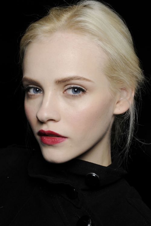 Lors de tant de défilés de mode en 2026, les premières places ont été occupées par une tendance au rouge à lèvres aux baies noires. Donc, si vous voulez vous acheter du rouge à lèvres, mais que vous ne savez pas lequel, n'hésitez pas à prendre cette nuance. Couleurs courantes: toutes les nuances de Bourgogne, prune, violet foncé. Pour changer votre maquillage, vous pouvez expérimenter cette tendance. Par exemple, les lèvres peintes, vous pouvez laisser votre visage «nu» - c’est aussi le summum de la mode. Ou ajoutez un liner noir pour les yeux et les ombres lumineuses.