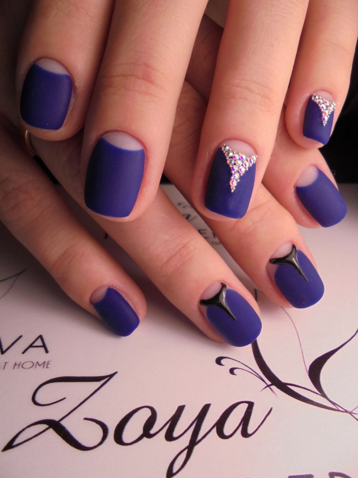 Le décor le plus populaire, bien sûr, sont les strass. Dans ce cas, ils peuvent être utilisés pour séparer le trou non peint. Si vous le souhaitez, la partie intérieure peut être remplie d'une image ou directement avec le décor lui-même. Tout dépend de la façon dont vous souhaitez effectuer une manucure brillante et entraînante.