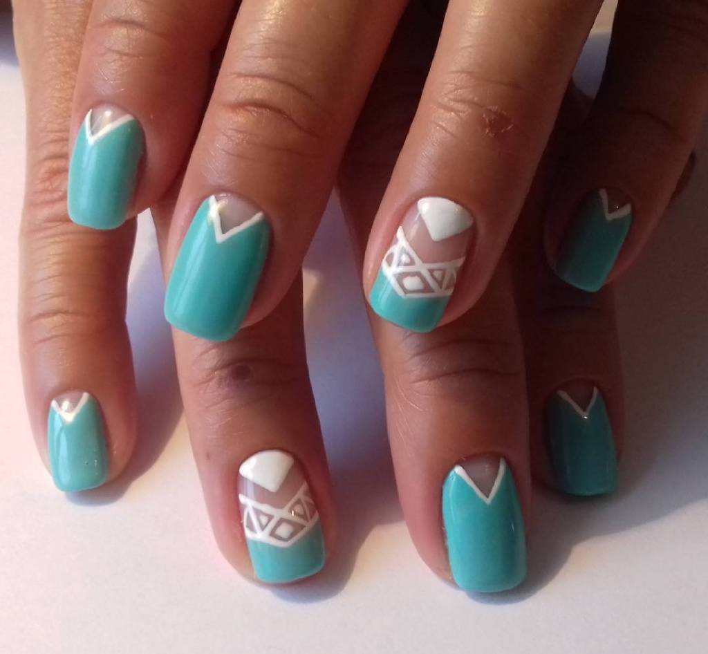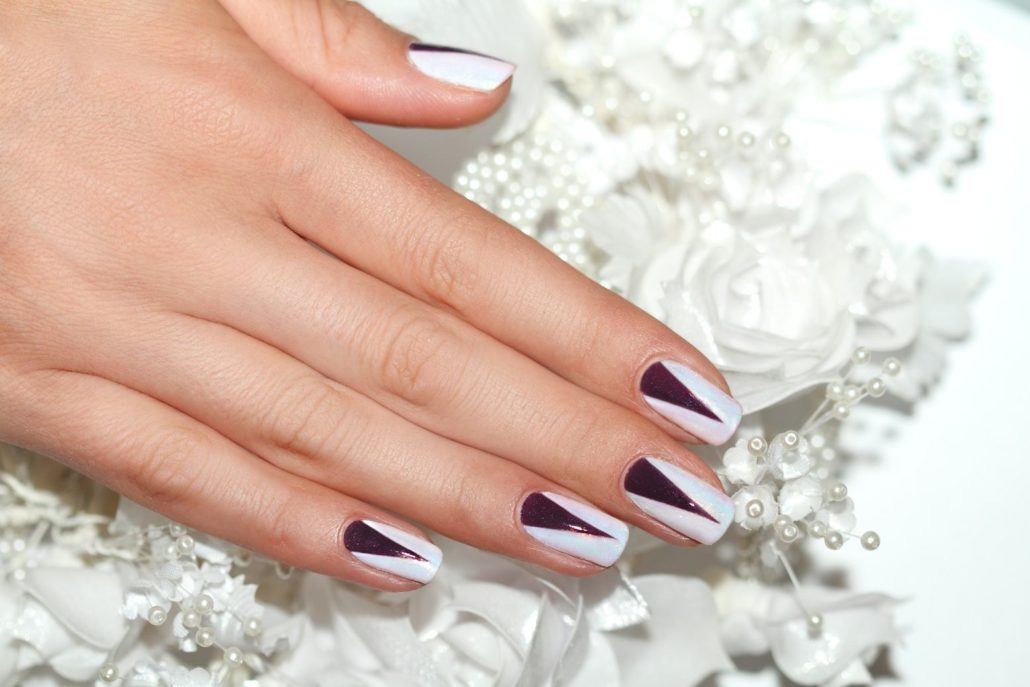 Manucure lune triangulaire avec décor