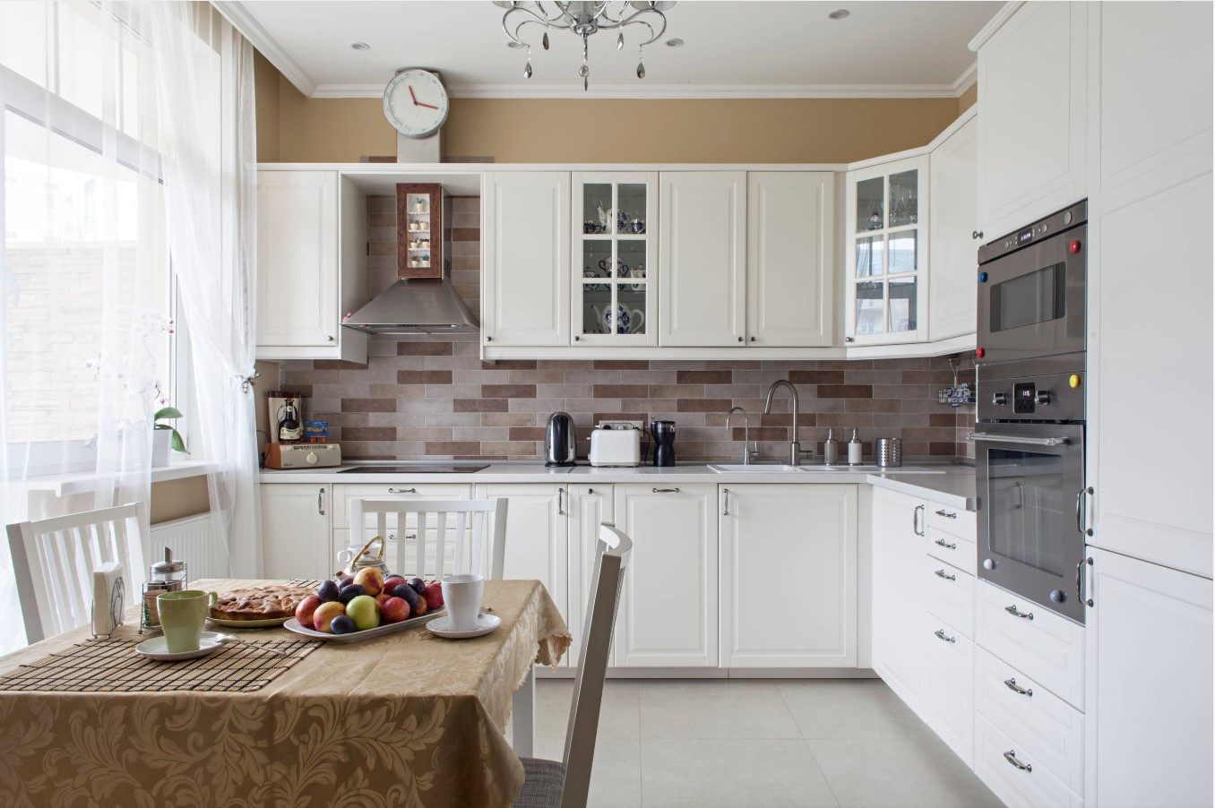 Cette couleur est largement utilisée dans la conception de la cuisine. Il agrandit visuellement l'espace et s'accorde bien avec les accessoires de couleur dorée, bois ou pierre naturelle. Pour beige, il est facile de prendre une tuile ou un papier peint.