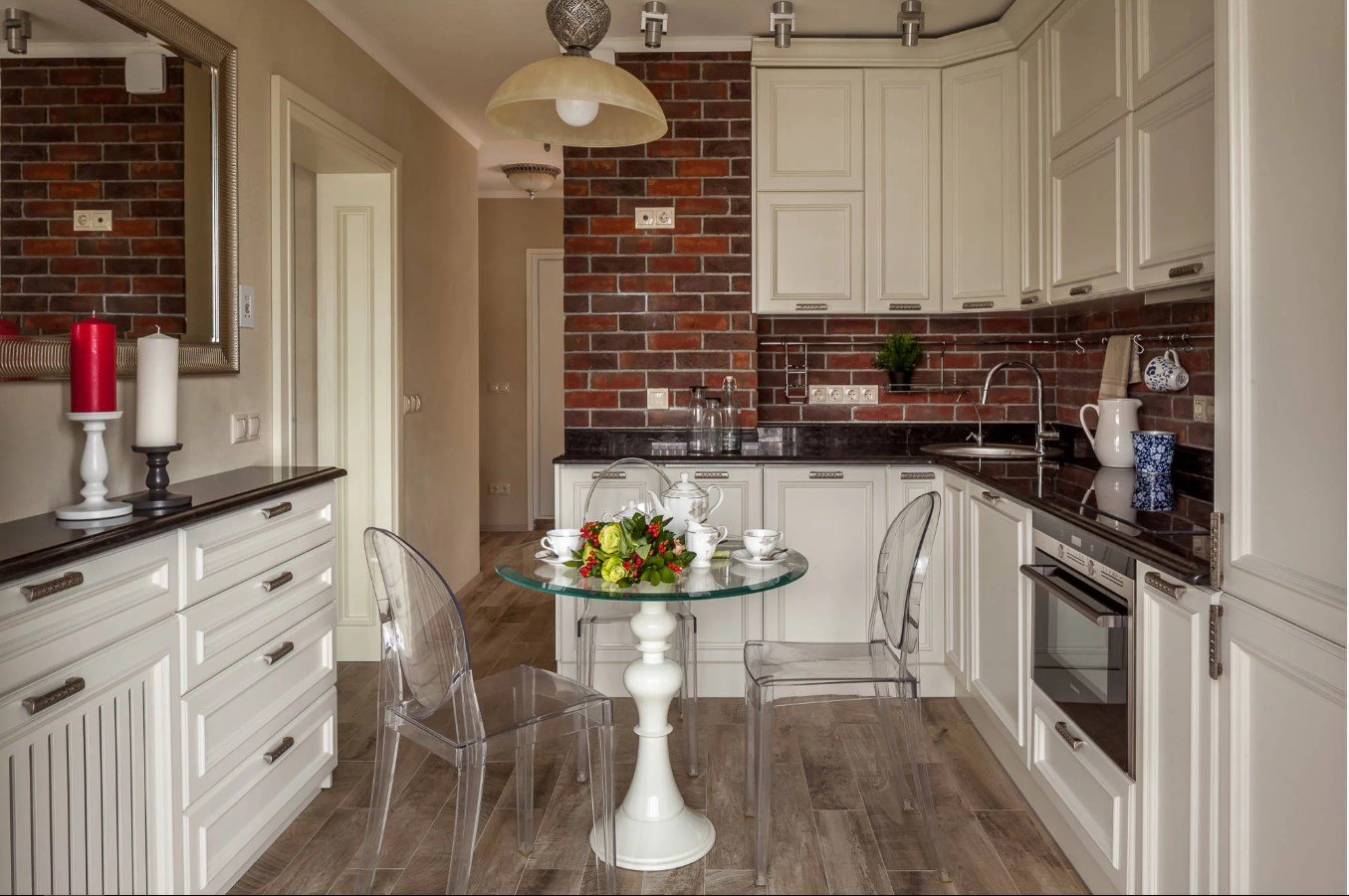 Une table à manger de taille normale ne peut pas être placée dans un petit coin cuisine. Vous devez penser à le déplacer dans une autre pièce ou à combiner la cuisine.