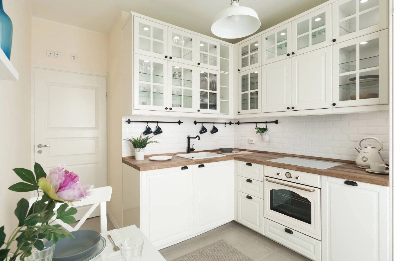 Cuisines d'angle: cas d'utilisation à l'intérieur et design élégant sur la photo