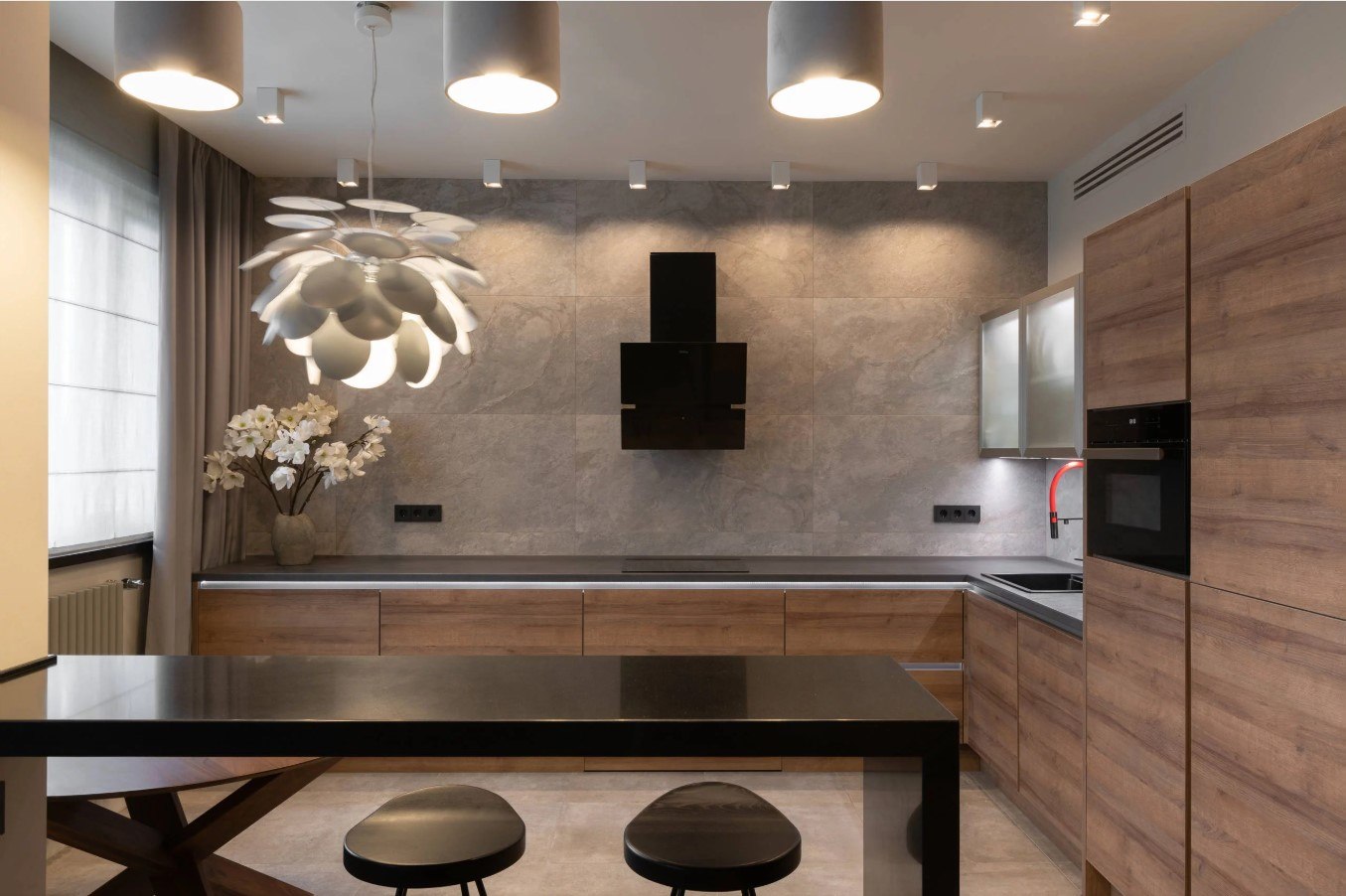 Contrairement à toutes les opinions, le noir est très beau en cuisine. Il a l'air élégant et va bien avec toutes les autres nuances. L'essentiel est de ne pas en faire trop, car le noir est capable de réduire visuellement l'espace.