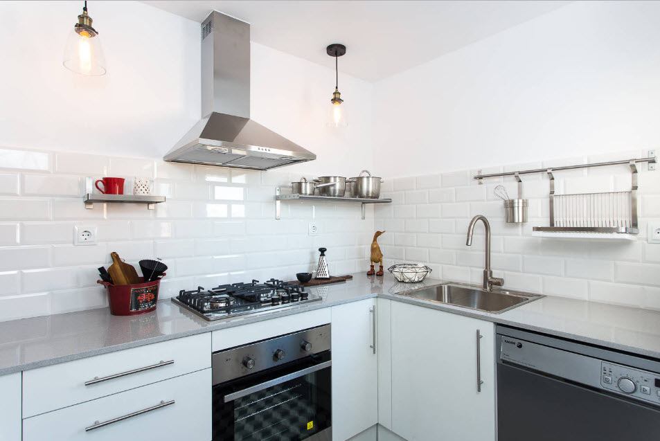 La couleur blanche élargit visuellement l'espace. Si vous faites une petite kitchenette en blanc, elle aura l'air solide. Le noir, les niveaux de gris et le métal sont bien combinés avec cette couleur. Un inconvénient sérieux de la cuisine blanche comme neige est sa pollution rapide. Il est souvent nécessaire de tout nettoyer et tout laver, mais tout le monde ne peut se le permettre.