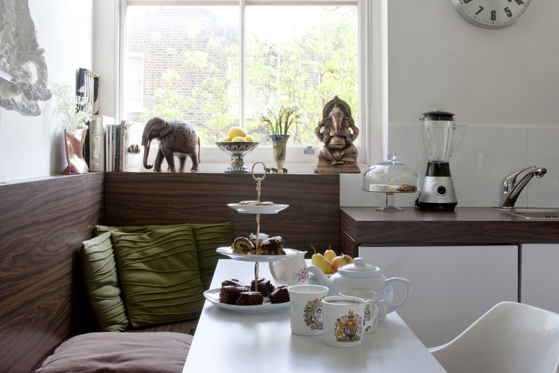 Une table à manger de taille normale ne peut pas être placée dans un petit coin cuisine. Vous devez penser à le déplacer dans une autre pièce ou à combiner la cuisine.