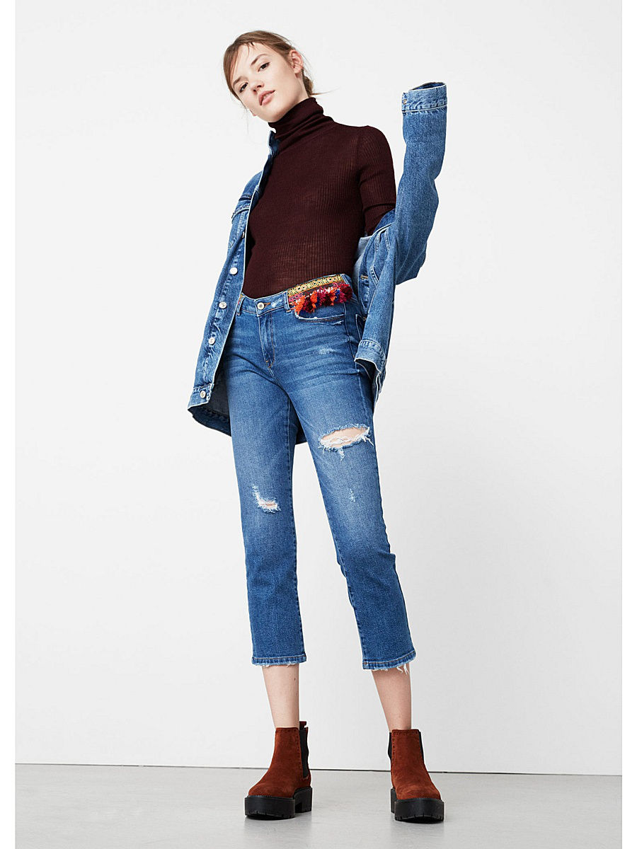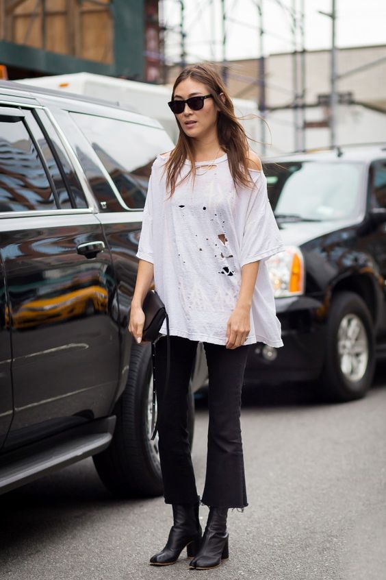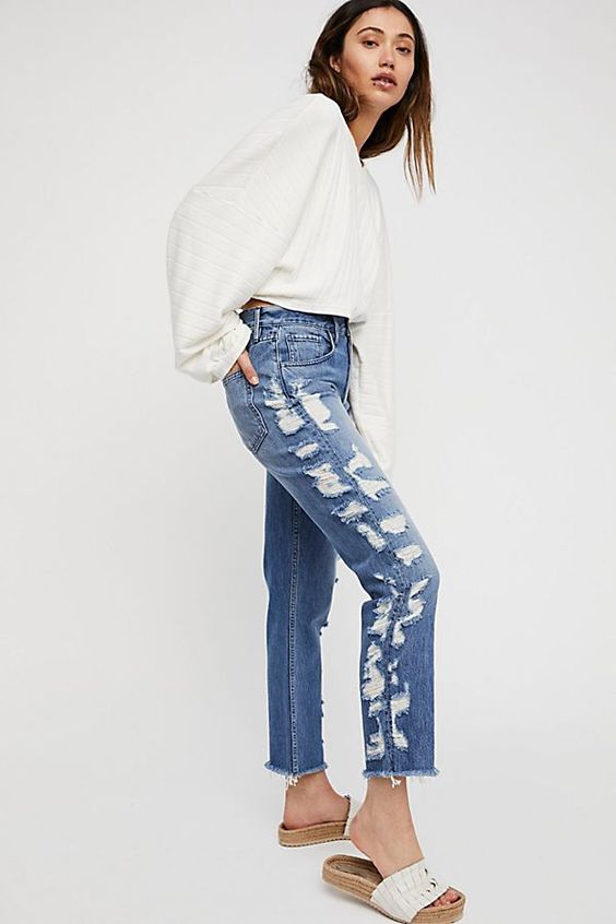 Si vous ne pouvez pas paraître en jean déchiré au travail ou dans un établissement d’enseignement, c’est l’option la mieux adaptée aux rues de la ville. Les jeans raccourcis se marient parfaitement avec le look urbain. Beaucoup de jeunes filles aiment ce type de pantalon et, par conséquent, même avec vos propres mains, vous pouvez transformer un jean court classique en un vêtement élégant et déchiqueté. Les jeans raccourcis se différencient par le degré de déchirure. Il existe également toutes sortes d’endommagements sur les jeans coupés, des genoux aux fesses.