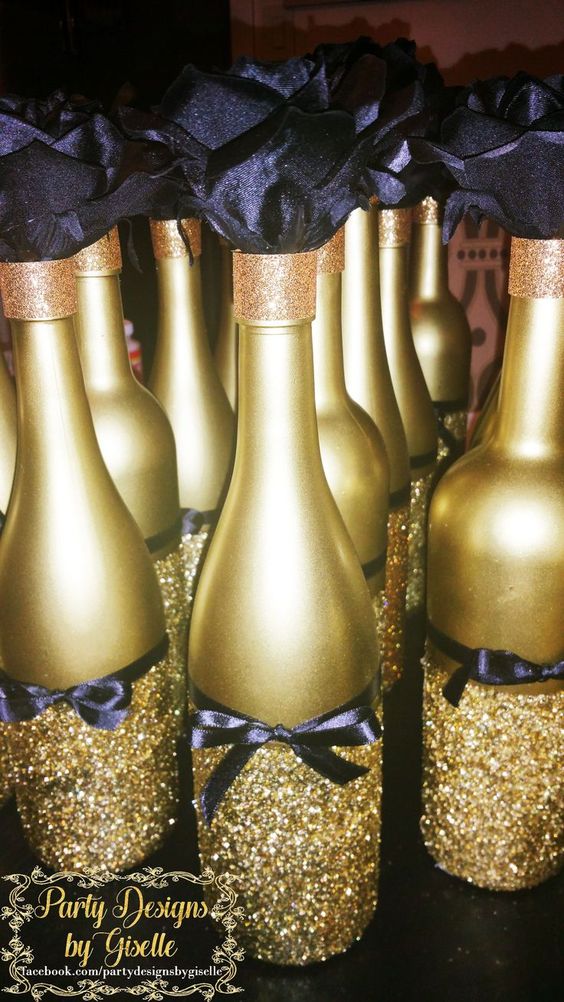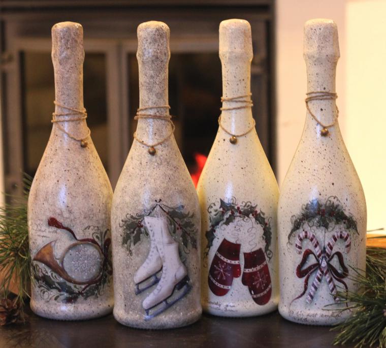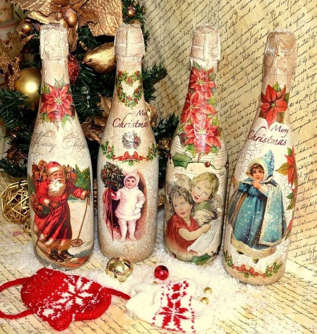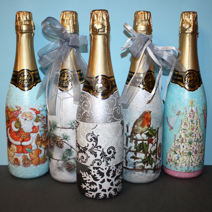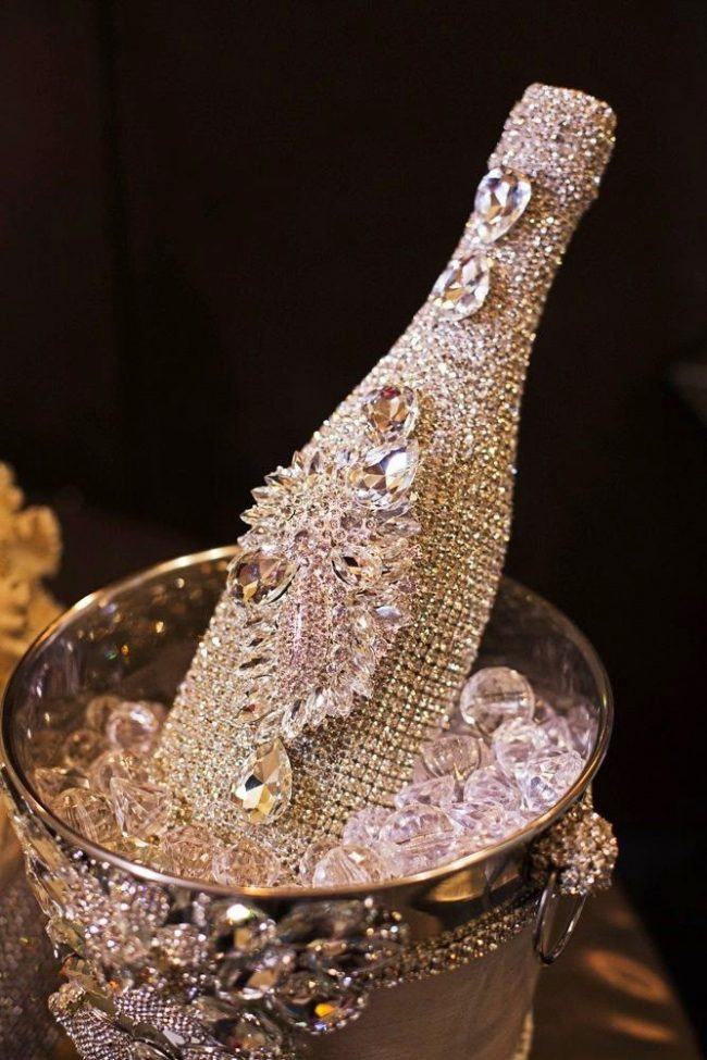Très bientôt, un moment bruyant et amusant viendra où vous devrez réfléchir à la manière intéressante, solennelle et inhabituelle de décorer la table du Nouvel An, y compris l'attribut obligatoire du Nouvel An - des bouteilles avec du vrai champagne, ou peut-être pas une seule. C'est sans champagne que le carillon des carillons et la réalisation de désirs secrets pour la prochaine année sont impensables. Beaucoup croient aux miracles, en particulier si vous parvenez à faire un voeu et buvez une coupe de champagne en 60 secondes, alors l'année suivante sera heureuse et ce désir deviendra réalité.