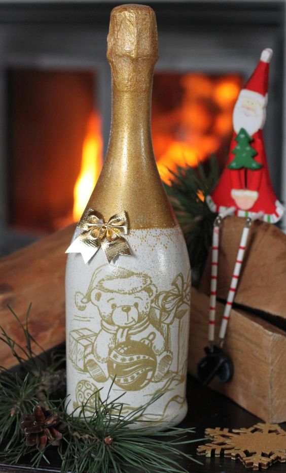 Bien sûr, pas un seul Nouvel An ne peut se passer de la célèbre boisson pétillante, et 2026 ne fait pas exception. Grâce à la décoration du champagne, vous pouvez améliorer l'ambiance du Nouvel An et dissiper l'atmosphère tendue entre collègues de travail. Le Nouvel An est une excellente occasion d’établir des contacts à l’aide d’une présentation présentée à des collègues sous la forme d’une bouteille de vin mousseux spécialement décorée, à boire immédiatement.