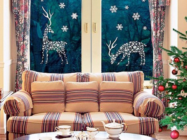 Pour créer une image spéciale du Nouvel An au plafond de la maison afin de faire face à la nouvelle année, vous pouvez utiliser des bandes LED spéciales. De plus, vous pouvez utiliser la pluie et des jouets suspendus sur une ligne de pêche. Et si vous préférez une décoration intérieure extraordinaire, des pochoirs à l’aide desquels la peinture acrylique est parfaitement appliquée sont conçus spécialement pour vous. N'ayez pas peur, il se lave facilement à l'aide d'un produit spécial, que vous devez entretenir à l'avance.