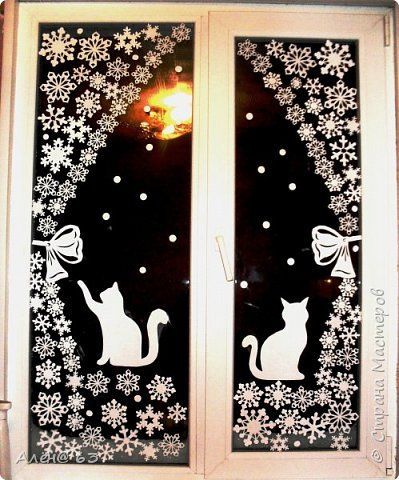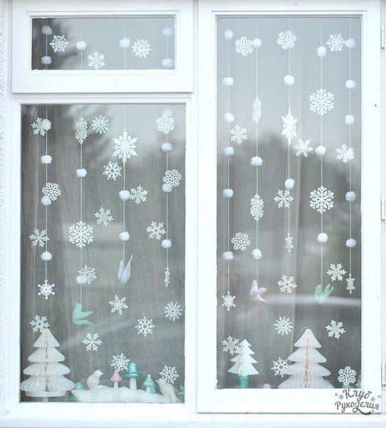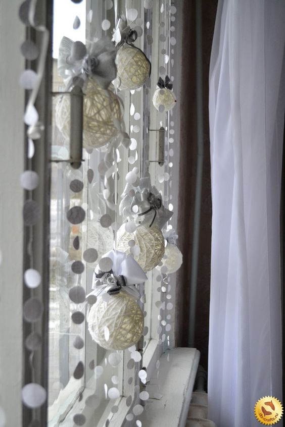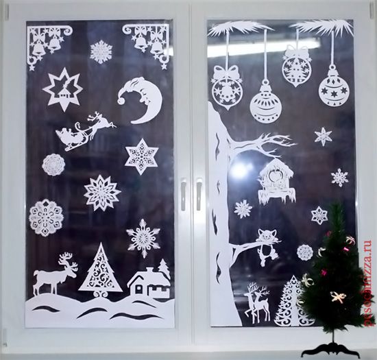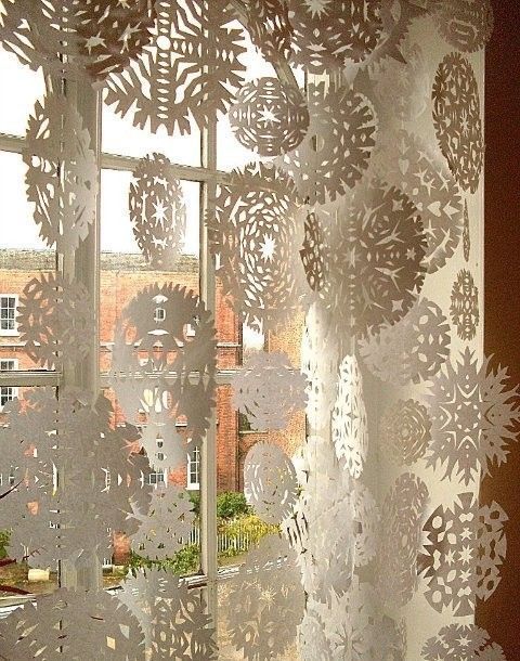 Chacun se souvient sûrement de la façon dont, dans son enfance, ils avaient découpé une variété de flocons de neige pour les vacances. Ce sont eux qui avaient l'habitude de décorer la pièce, de faire une guirlande. Nous proposons de faire la même chose pour la décoration des fenêtres. On dirait une super composition composée de flocons de neige. Ici, vous pouvez montrer votre imagination et créer quelque chose de vraiment intéressant.