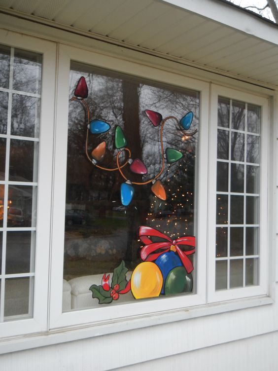 Vous pouvez magnifiquement décorer une fenêtre avec des flocons de neige ou des guirlandes. Des compositions thématiques intéressantes gagnent en popularité chaque année. Et tout cela parce que pour leur création, vous pouvez utiliser absolument tous les objets qui sont un symbole de la nouvelle année pour vous.
