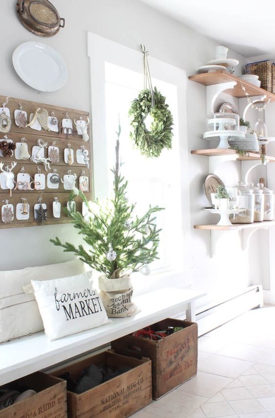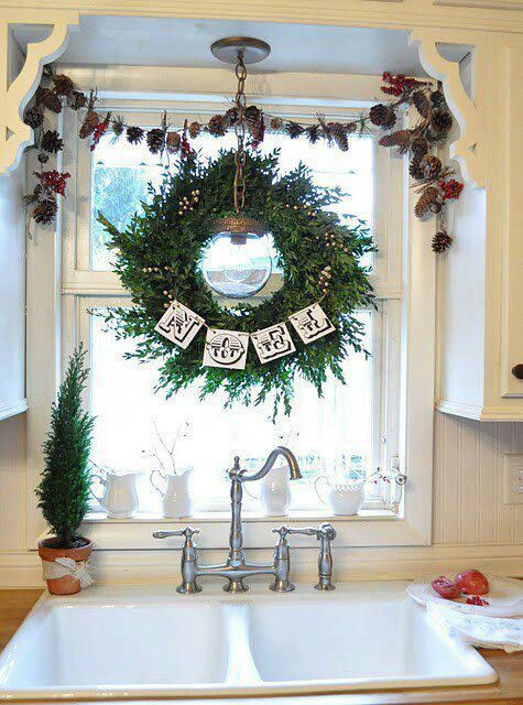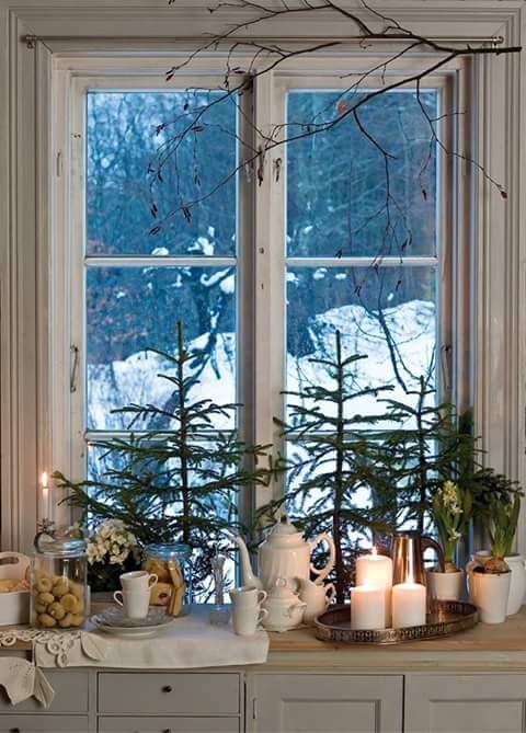 Si vous le souhaitez, vous pouvez compléter le décor avec une guirlande, des jouets de Noël. Pas moins élégant avec des petites tasses à thé et un vase avec des biscuits.
